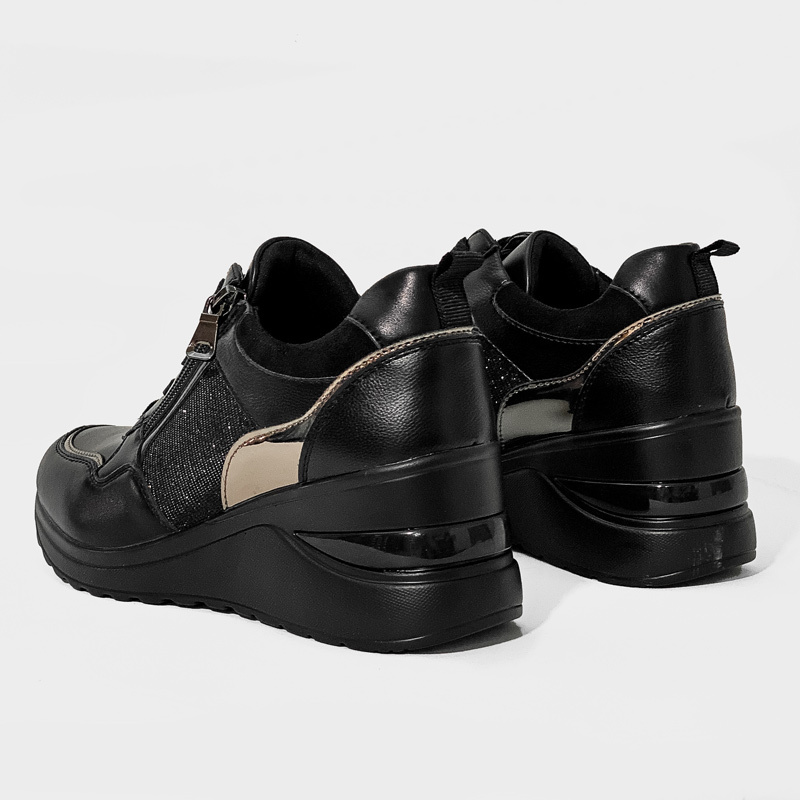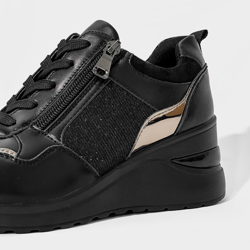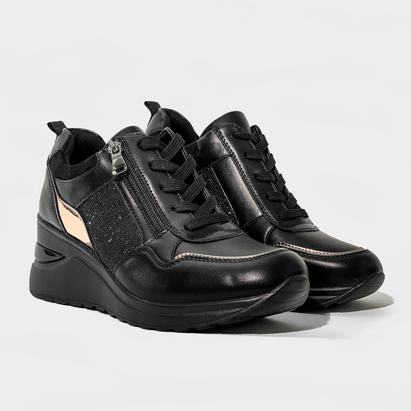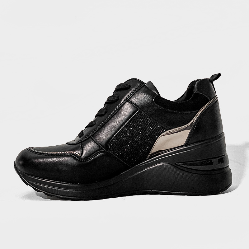 Sneaker της Adam’s shoes με άνω μέρος από οικολογικό δέρμα σε μαύρο χρώμα. Διαθέτει μαλακό εσωτερικό πάτο και εξωτερική σόλα από καουτσούκ. Ένα άνετο και κομψό παπούτσι για τις καθημερινές σας υποχρεώσεις.