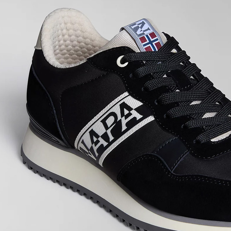 Ανδρικά sneakers από τη Νορβηγική εταιρεία Napapijri, κατασκευασμένα από ανθεκτικό γνήσιο δέρμα και υφασμάτινα τμήματα. Διαθέτουν κορδόνια για τέλεια εφαρμογή, μαλακό απορροφητικό πάτο και ενδιάμεση σόλα από EVA που απορροφά τους κραδασμούς.