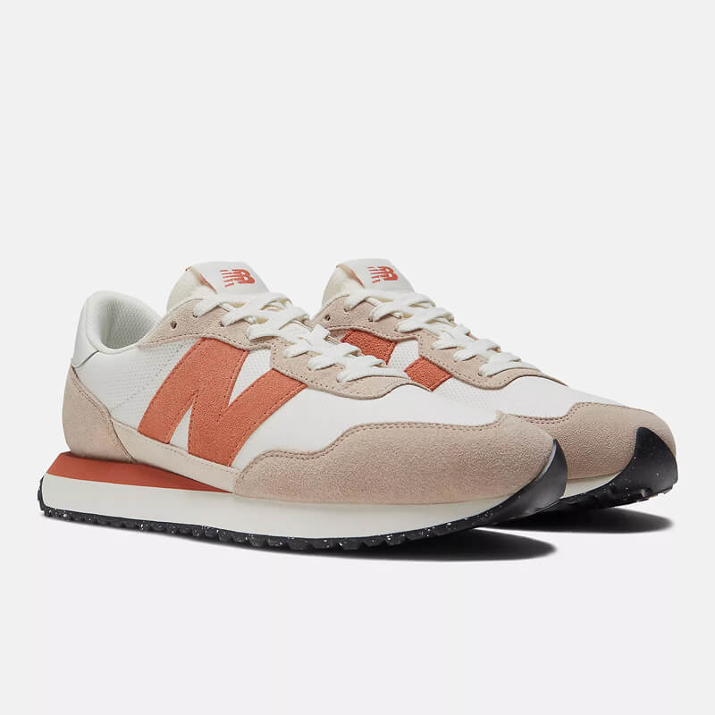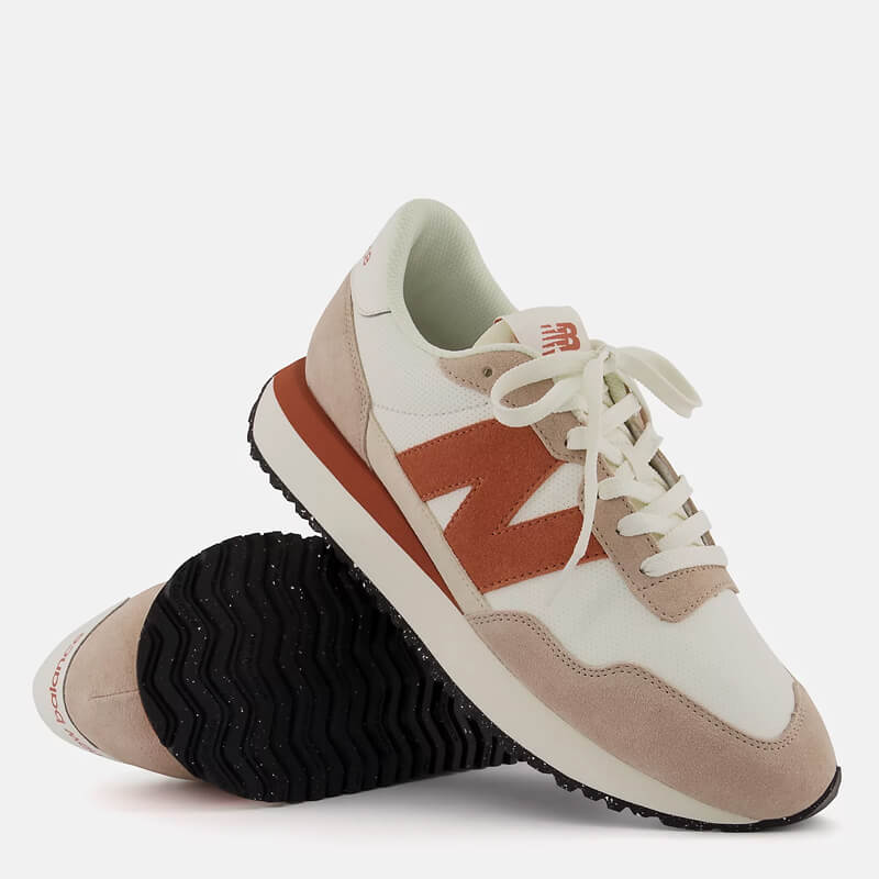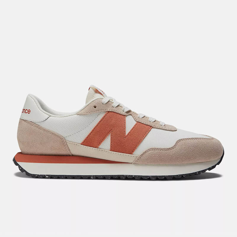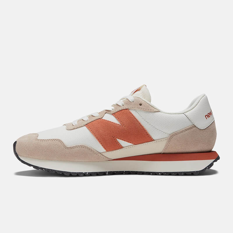 Sneaker της New Balance με άνω μέρος από ύφασμα υψηλής ποιότητας και suede επικαλύψεις. Διαθέτει άνετο εσωτερικό πάτο και εξωτερική σόλα από λάστιχο. Δημιουργημένο από ξεχωριστά μεμονωμένα κομμάτια παλαιότερων υποδημάτων, το 237 συνθέτει ένα σύγχρονο αποδομημένο σύνολο που ξεχωρίζει για το στυλ του.