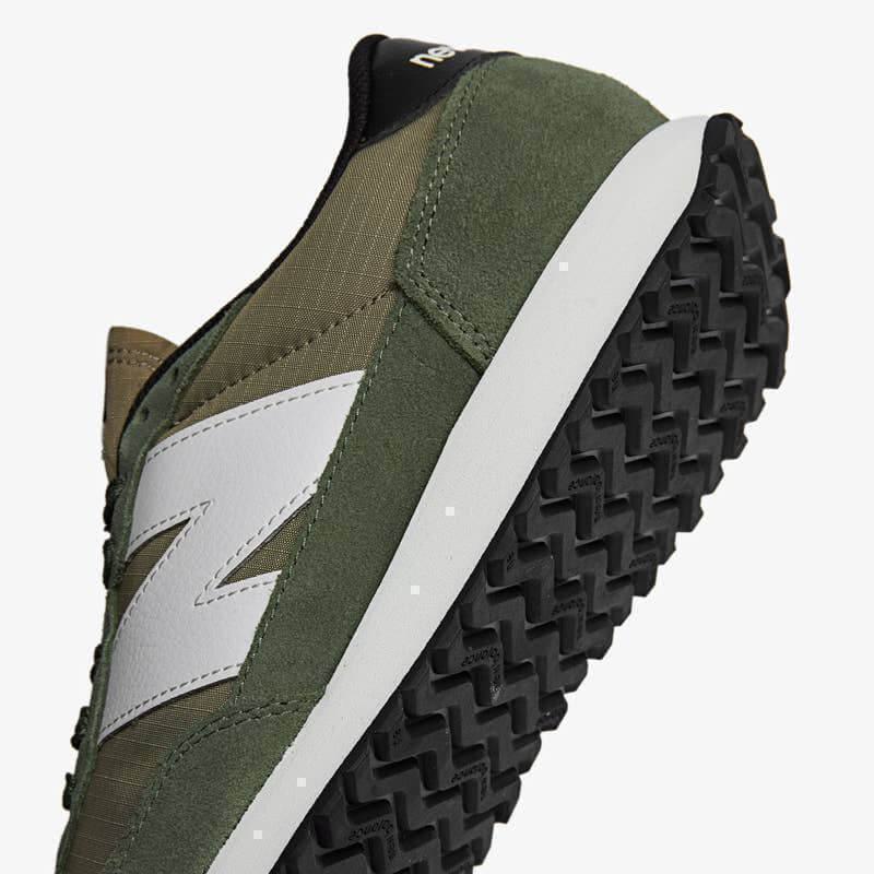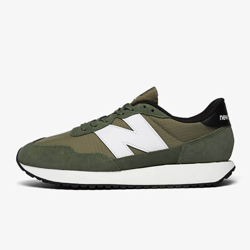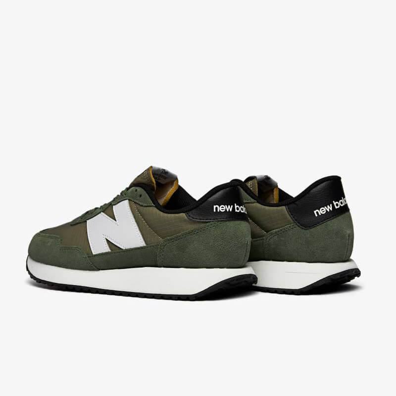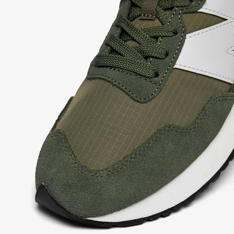 Sneaker της New Balance με άνω μέρος από ύφασμα υψηλής ποιότητας και suede επικαλύψεις. Διαθέτει άνετο εσωτερικό πάτο και εξωτερική σόλα από λάστιχο. Δημιουργημένο από ξεχωριστά μεμονωμένα κομμάτια παλαιότερων υποδημάτων, το 237 συνθέτει ένα σύγχρονο αποδομημένο σύνολο που ξεχωρίζει για το στυλ του.