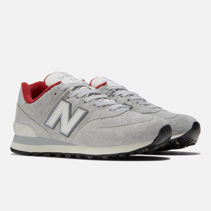 Sneaker της New Balance με άνω μέρος suede σε γκρι χρώμα. Διαθέτει απορροφητική μεσόσολα EVA, ανθεκτική μεσόσολα ENCAP και εξωτερική σόλα από καουτσούκ. Το εμβληματικότερο σχέδιο της New Balance το 574 που δεν έχασε ποτέ την αίγλη του στο χώρο των sneakers.