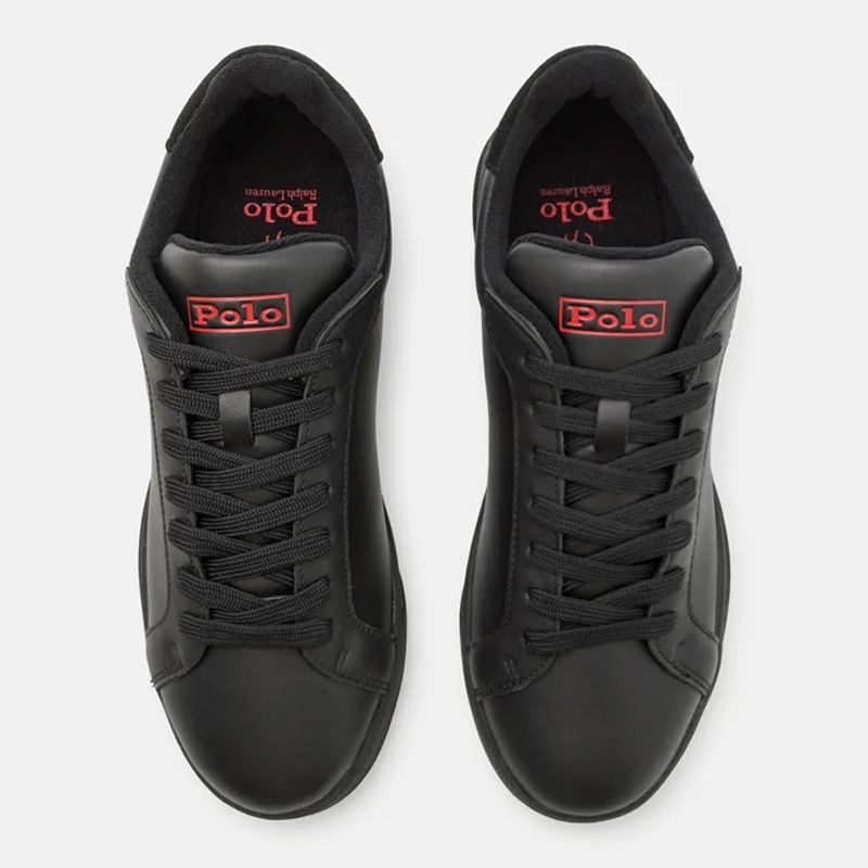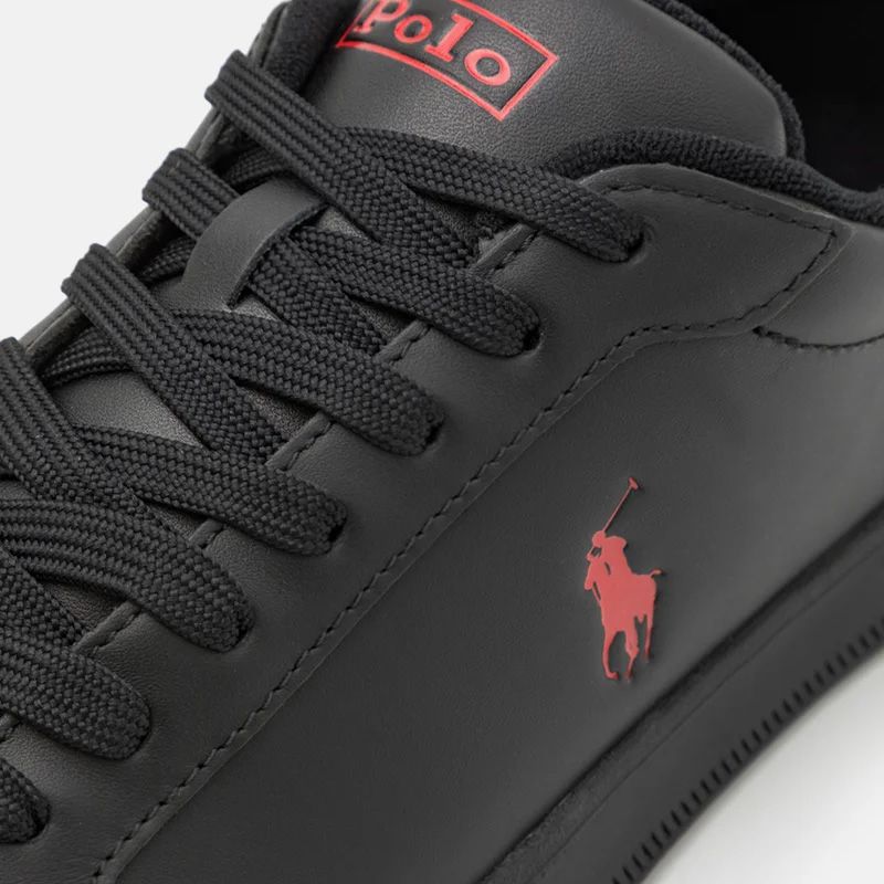 Ανδρικό sneaker Polo Ralph Lauren από γνήσιο δέρμα σε μαύρο χρώμα με κόκκινες λεπτομέρειες. Διαθέτει μαλακό εσωτερικό πάτο και εξωτερική σόλα από καουτσούκ. Ένα κομψό παπούτσι για τις καθημερινές σας υποχρεώσεις.