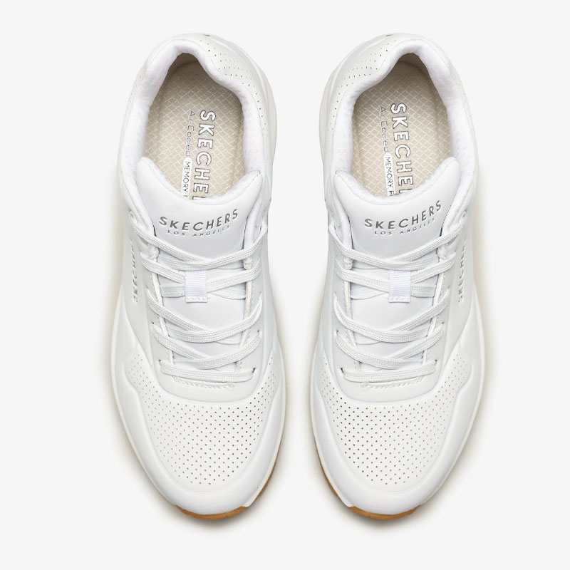 Sneaker της Skechers από οικολογικό δέρμα σε άσπρο χρώμα. Διαθέτει εσωτερικό πάτο με Air Cooled Memory Foam για μέγιστη άνεση, ενδιάμεση σόλα με Air-Cushioned τμήματα για εξαιρετική αντικραδασμική προστασία και εύκαμπτη εξωτερική σόλα μεγάλης πρόσφυσης. Ένα μοδάτο, καθημερινό παπούτσι με κορδόνια που θα σας προσφέρει άνεση και στυλ.