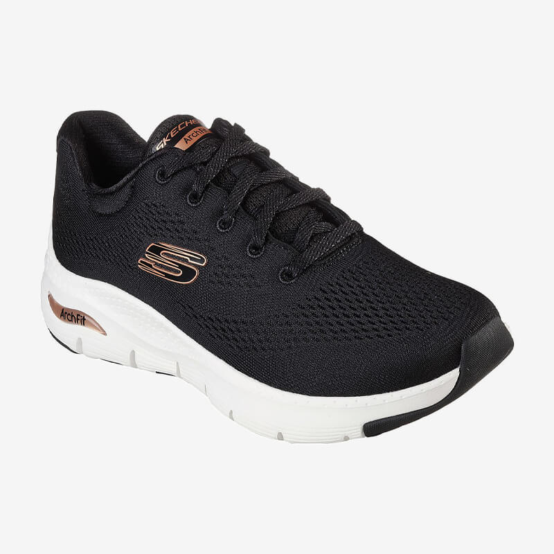 Sneaker της Skecher από πλεκτό, διχτυωτό ύφασμα σε μαύρο χρώμα. Διαθέτει εσωτερικό, αποσπώμενο πάτο Arch Fit που προσφέρει υποστήριξη στην καμάρα και ενδιάμεση σόλα που προσφέρει αντικραδασμική προστασία. Επιπλέον η εύκαμπτη εξωτερική σόλα από καουτσούκ προσφέρει καλύτερή πρόσφυση. Ένα άνετο παπούτσι για το καθημερινό σας περπάτημα.