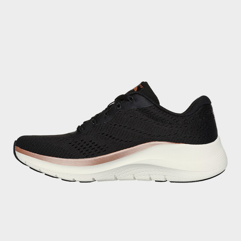 Sneaker της Skechers με άνω μέρος από πλεκτό ύφασμα σε μαύρο χρώμα. Διαθέτει σύστημα εσωτερικής σόλας Skechers Arch Fit® με υποστήριξη καμάρας πιστοποιημένη από ποδολόγο και σχήμα σχεδιασμένο από ποδίατρο που αναπτύχθηκε με δεδομένα 20 ετών και 120.000 σαρώσεις ποδιών. Επιπλέον η ελαφριά ενδιάμεση σόλα προφέρει αντικραδασμική προστασία. Ένα άνετο και ελαφρύ παπούτσι για τις καθημερινές σας υποχρεώσεις.