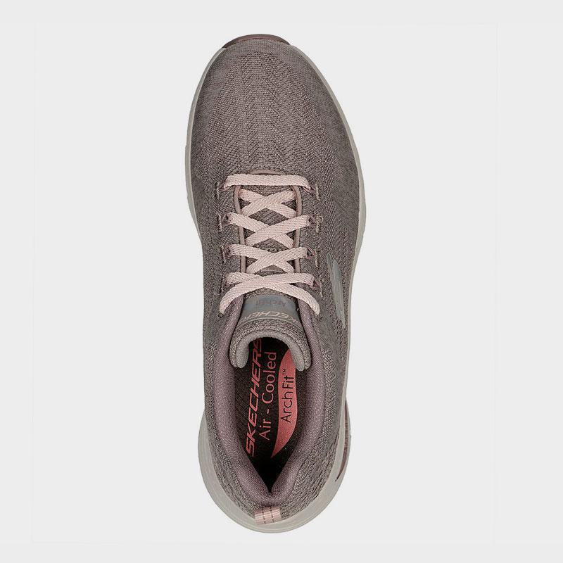 Sneaker της Skechers με άνω μέρος από πλεκτό ύφασμα σε καφέ χρώμα. Διαθέτει σύστημα εσωτερικής σόλας Skechers Arch Fit® με υποστήριξη καμάρας πιστοποιημένη από ποδολόγο και σχήμα σχεδιασμένο από ποδίατρο που αναπτύχθηκε με δεδομένα 20 ετών και 120.000 σαρώσεις ποδιών. Επιπλέον η ελαφριά ενδιάμεση σόλα προφέρει αντικραδασμική προστασία. Ένα άνετο και ελαφρύ παπούτσι για τις καθημερινές σας υποχρεώσεις.