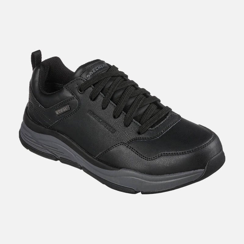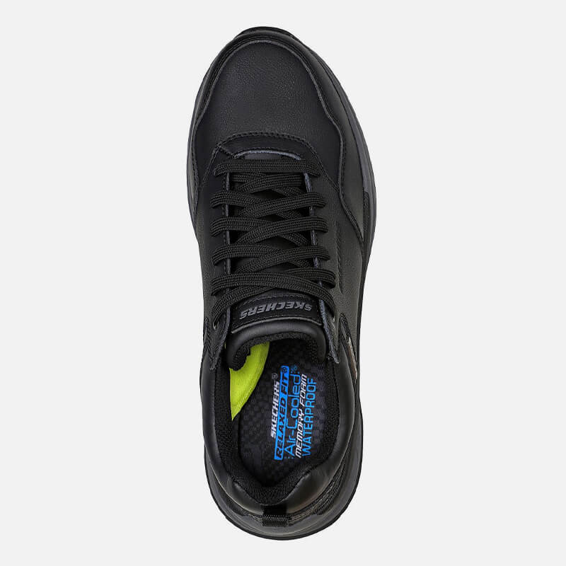 Sneaker της Skecher με άνω μέρος με απαλό, αδιάβροχο δέρμα επεξεργασμένο με λάδι σε μαύρο χρώμα. Διαθέτει μαλακό εσωτερικό πάτο Air Cooled Memory Foam και ενδιάμεση σόλα που απορροφά τους κραδασμούς. Ένα άνετο και κομψό παπούτσι τύπου oxford κατάλληλο για κάθε μέρα.