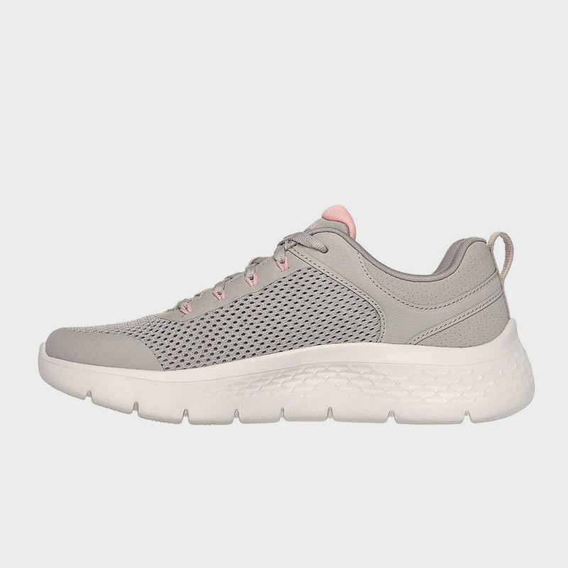 Sneaker της Skechers με άνω μέρος από διαπνέον ύφασμα υψηλής ποιότητας σε μπεζ χρώμα και ροζ λεπτομέρειες. Διαθέτει μαλακό εσωτερικό πάτο Skechers Air-Cooled Goga Mat™ και ελαφριά αντικραδασμική προστασία ULTRA GO® και Flex Pillars™ για πρόσθετη υποστήριξη. Ένα άνετο και ελαφρύ παπούτσι για κάθε μέρα.