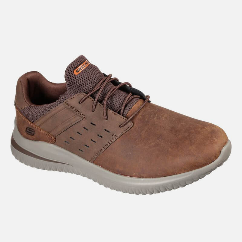 Sneaker της Skechers με άνω μέρος από γνήσιο και οικολογικό δέρμα σε καφέ χρώμα. Διαθέτει μαλακό εσωτερικό πάτο Skechers Air-Cooled Memory Foam® και αντικραδασμική προστασία Goga Mat ® Arch. Ένα παπούτσι τύπου oxford που θα σας προσφέρει άνεση και στυλ στην καθημερινότητα σας.