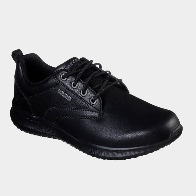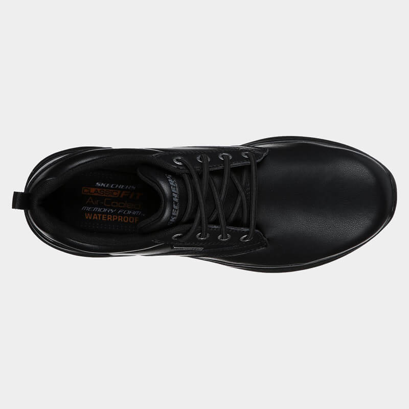 Ανδρικό sneaker Skechers από γνήσιο δέρμα. Είναι ένα Άνετο, καθημερινό, αδιάβροχο αθλητικό oxford παπούτσι που διαθέτει εσωτερικό πάτο με Air Cooled Memory Foam και ενδιάμεση σόλα ειδικά σχεδιασμένη για μέγιστη ευκαμψία. Επιπλέον η εξωτερική μαλακή σόλα προσφέρει αντικραδασμική δράση