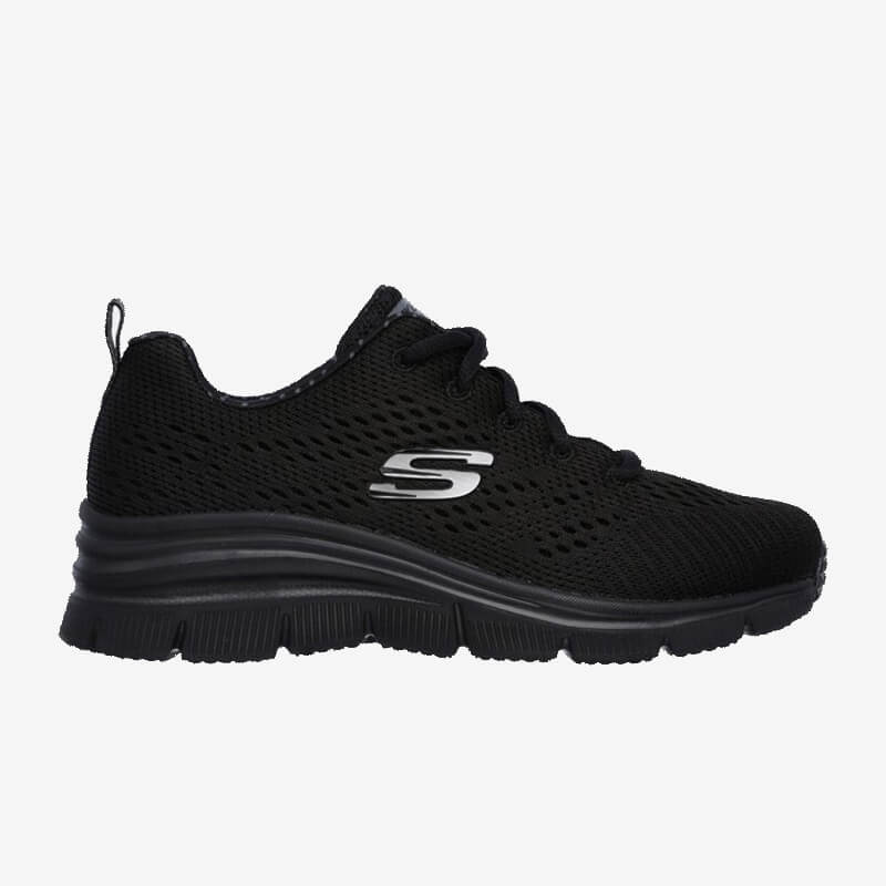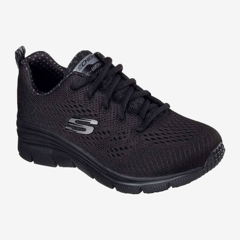 Sneaker Skechers Knit Lace Up Wedge 12704-BBK Μαύρο