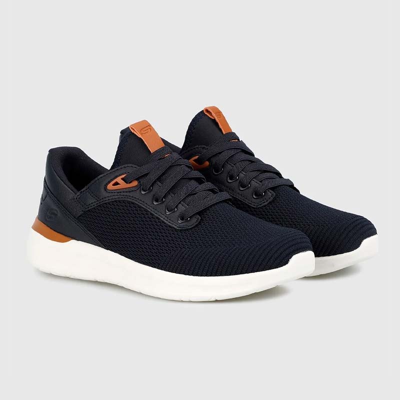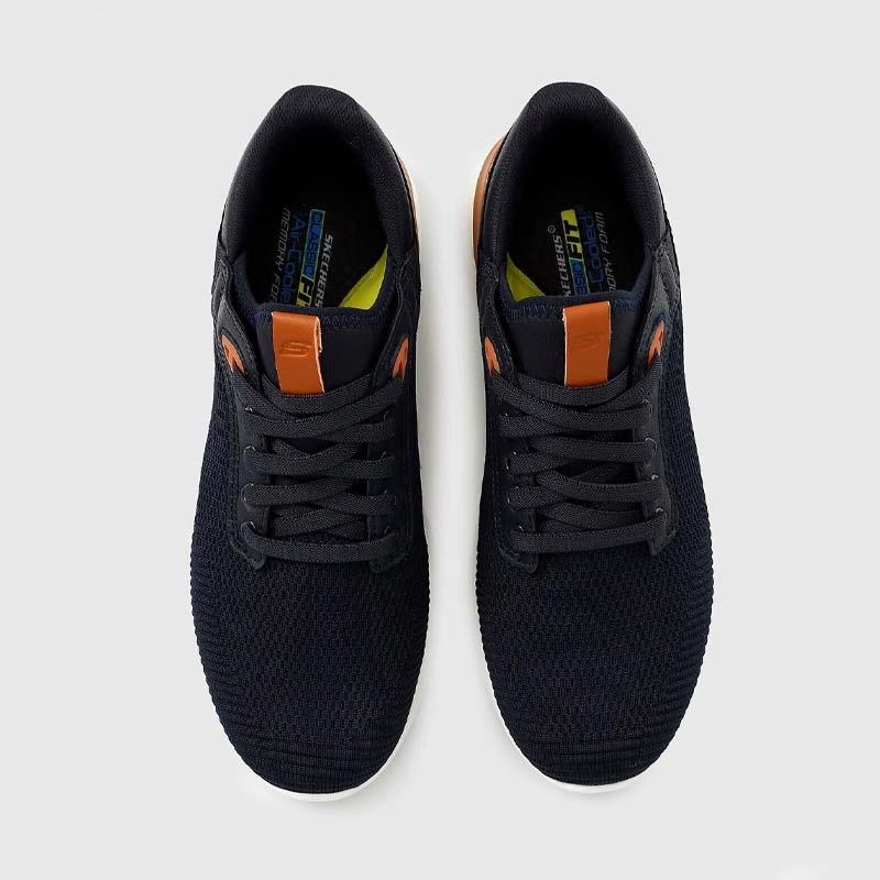 Sneaker Skechers με άνω μέρος από διαπνέον ύφασμα υψηλής ποιότητας σε μπλε χρώμα. Διαθέτει μαλακό εσωτερικό πάτο Air-Cooled Memory Foam® για αντικραδασμική δράση και Skechers Goga Mat Arch™ για πρόσθετη υποστήριξη. Ένα άνετο και κομψό παπούτσι κατάλληλο για κάθε μέρα.