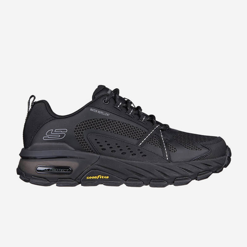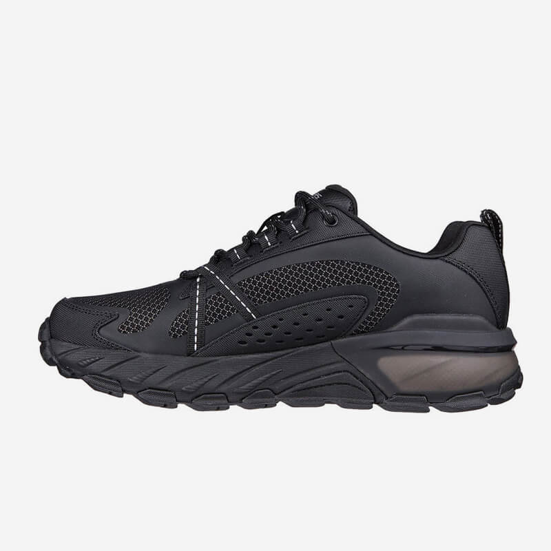 Sneaker της Skechers άνω μέρος από ύφασμα υψηλής ποιότητας με δερμάτινες επικαλύψεις που απωθεί το νερό (water repellant). Διαθέτει μαλακό εσωτερικό πάτο Air Cooled Memory Foam, ενδιάμεση σόλα για αντικραδασμική δράση και εξωτερική σόλα Goodyear® Performance. Ένα άνετο και ανθεκτικό παπούτσι κατάλληλο για τις αθλητικές σας δραστηριότητες σε όλες τις επιφάνειες ακόμα και σε συνθήκες υγρασίας.
