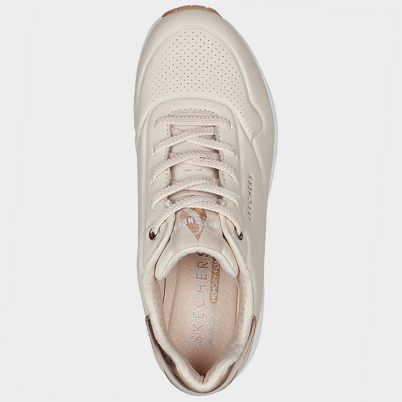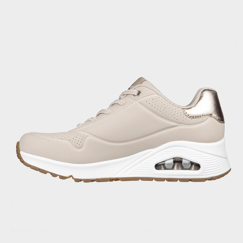 Sneaker της Skechers από οικολογικό δέρμα σε μπεζ χρώμα. Διαθέτει μαλακό εσωτερικό πάτο Air-Cooled Memory Foam και εξωτερική σόλα από καουτσούκ. Ένα άνετο και ανθεκτικό sneaker με αερόσολα κατάλληλο για όλη την διάρκεια της ημέρας.