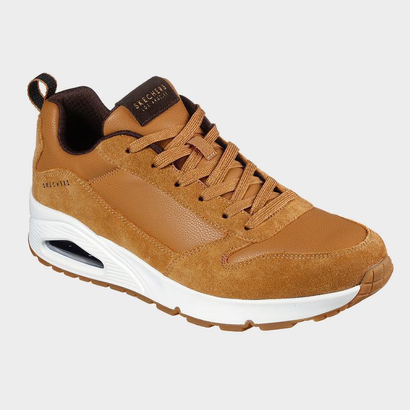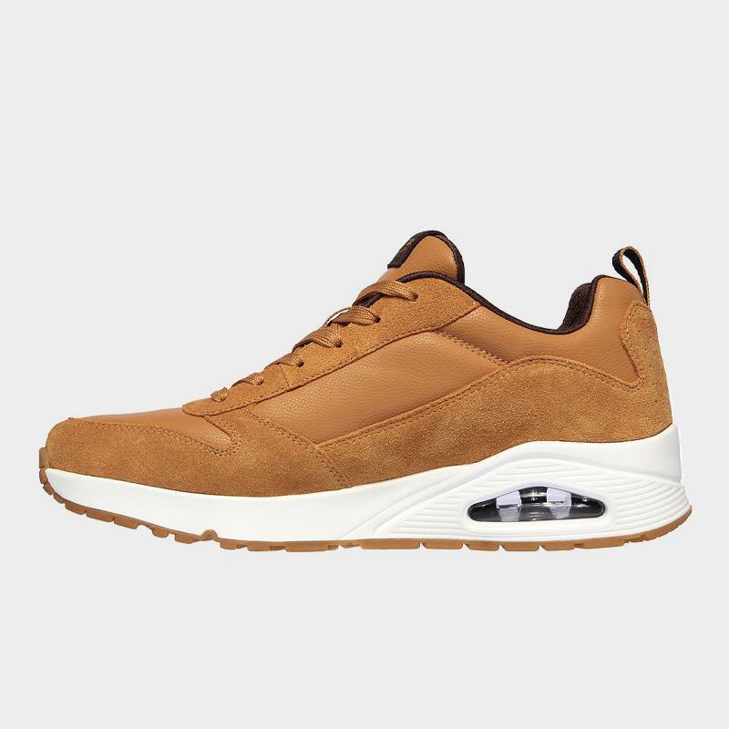 Sneaker της Skechers με άνω μέρος από οικολογικό δέρμα και επικαλύψεις από απαλό suede. Διαθέτει μαλακό εσωτερικό πάτο Air-Cooled Memory Foam® και ενδιάμεση σόλα με ορατή αερόσολα Skech-Air®. Ένα casual παπούτσι που θα σας χαρίσει άνεση όλη την ημέρα.