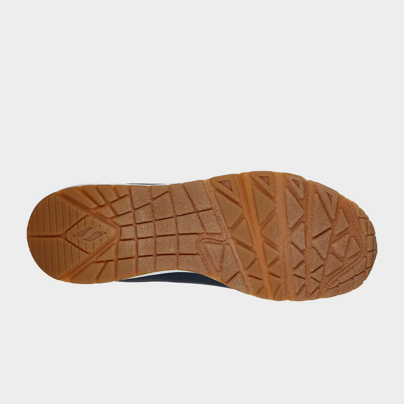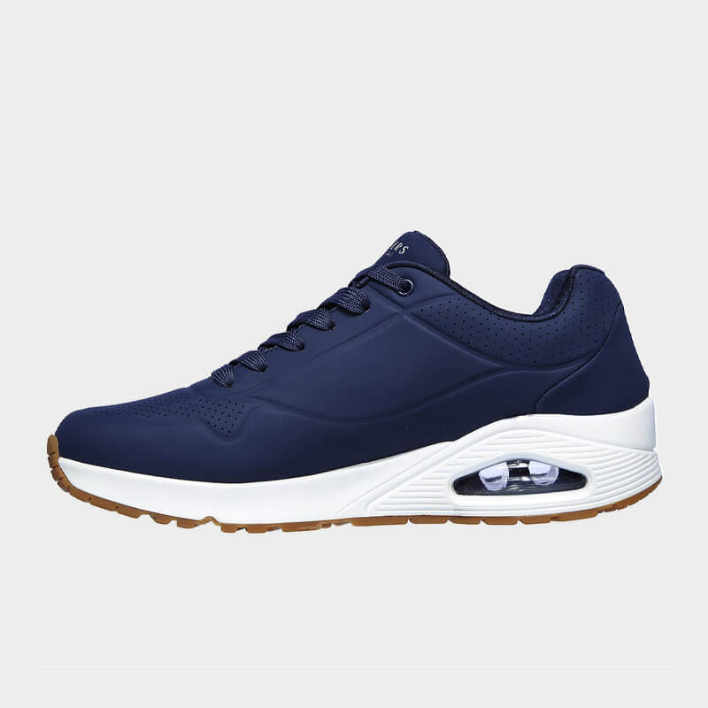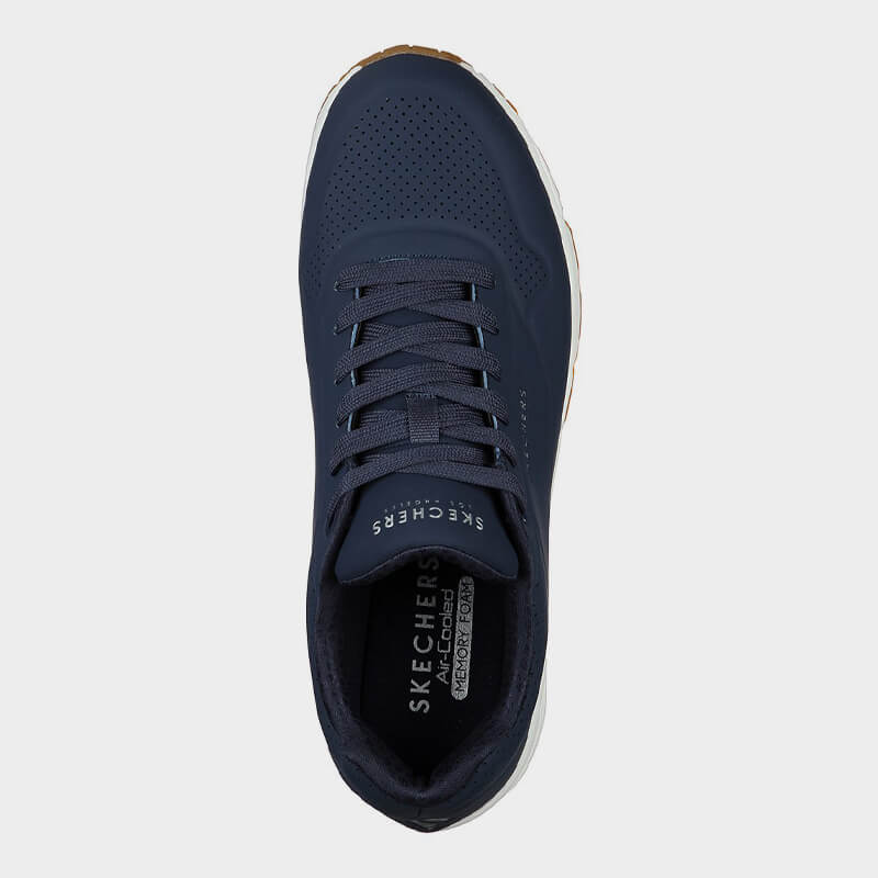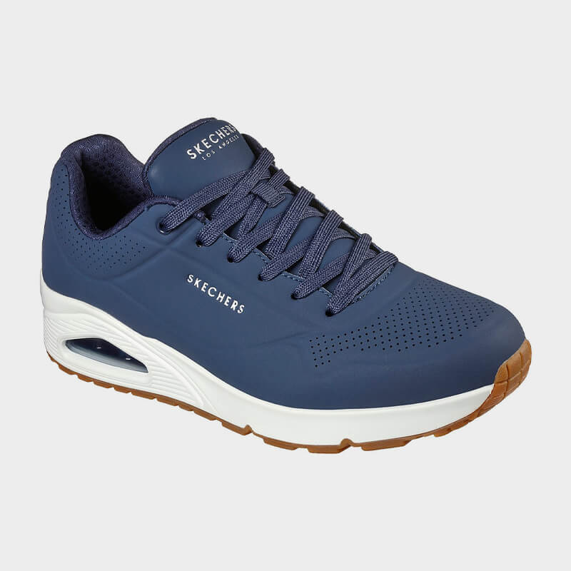 Sneaker της Skechers με άνω μέρος από οικολογικό δέρμα σε μπλε χρώμα. Διαθέτει μαλακό εσωτερικό πάτο Air Cooled Memory Foam και αντιολισθητική Air Cushioned σόλα. Ένα casual παπούτσι κατάλληλο για όλη την διάρκεια της ημέρας.