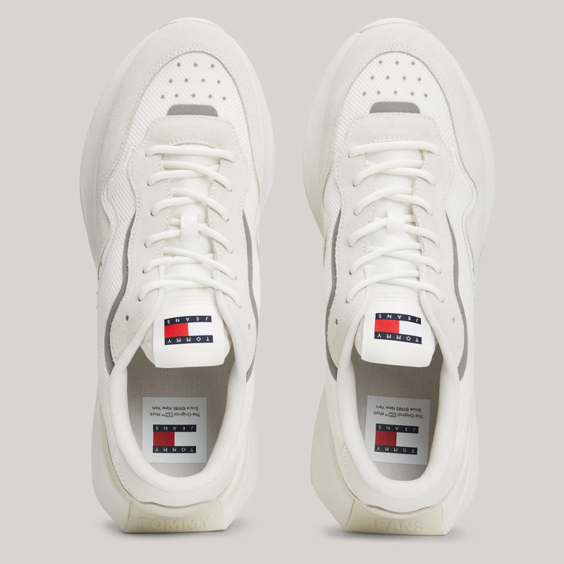 Ένα μοντέρνο και ευέλικτο παπούτσι για την καθημερινότητά σου, το Runner Mix Material από τη σειρά Tommy Jeans είναι ιδανικό. Κατασκευασμένο από διάφορα πάνελ υφάσματος και δέρματος εξωτερικά, με εσωτερικό από συνθετικό ύφασμα, είναι ελαφρύ και διαπνέον. Η στιβαρή σόλα με ανάγλυφο πάτο προσφέρει σταθερότητα και υποστήριξη όλη μέρα.