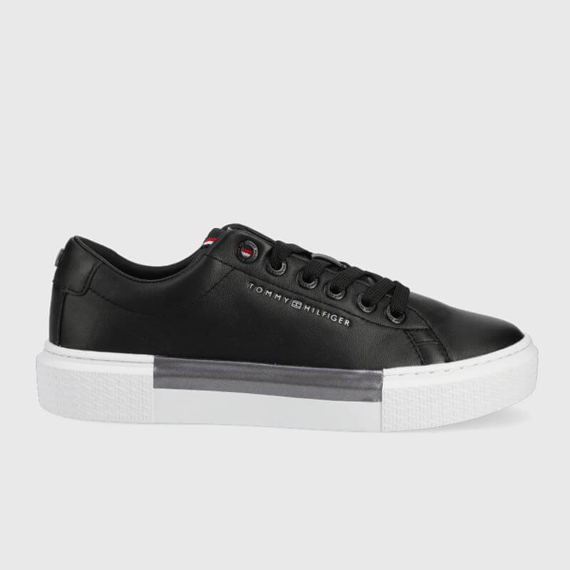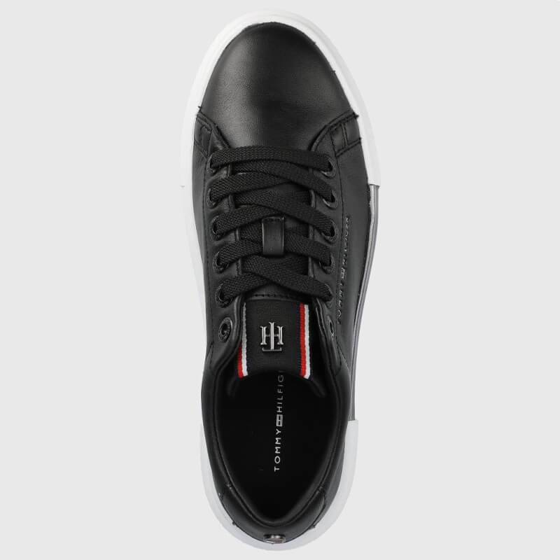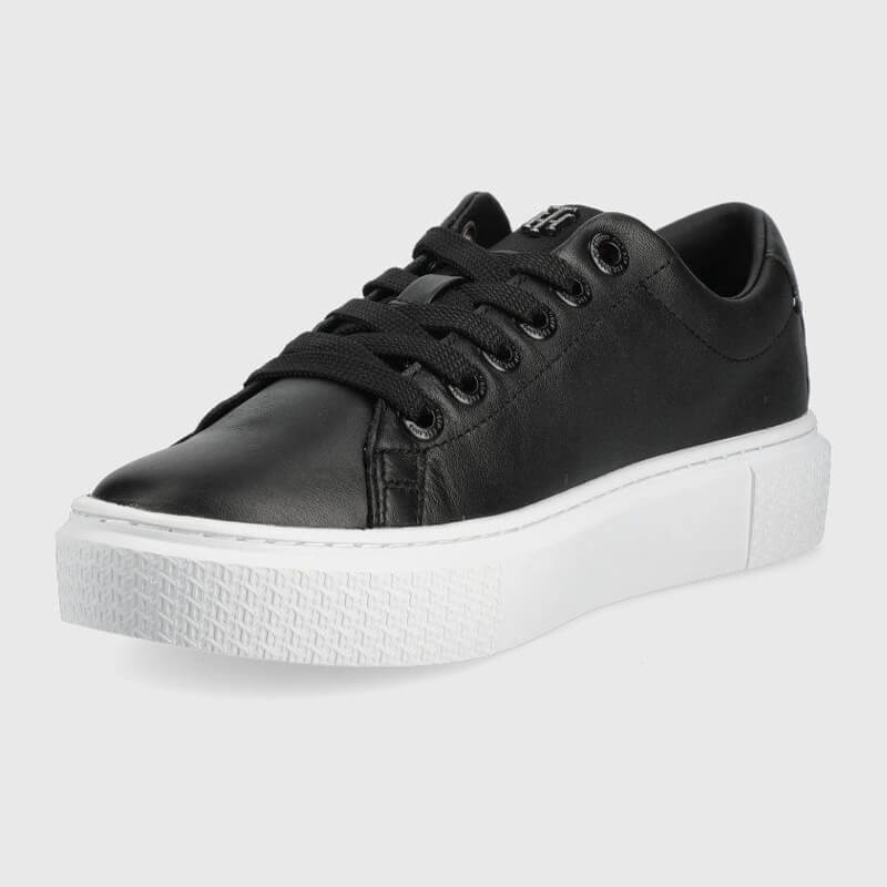 Sneaker Tommy Hilfigher με άνω μέρος από γνήσιο δέρμα σε μαύρο χρώμα. Διαθέτει άνετο εσωτερικό πάτο και εξωτερική σόλα από καουτσούκ. Ένα άνετο και κομψό παπούτσι για κάθε μέρα.