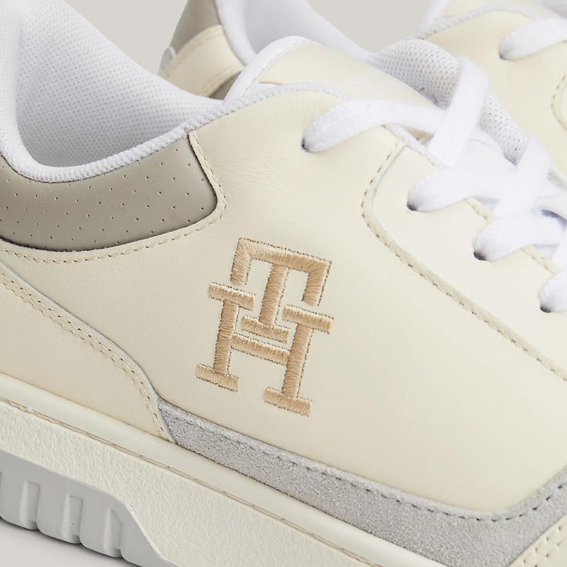 Τα sneaker της Tommy Hilfiger είναι ένα ζευγάρι άνετα και στιλάτα μπεζ κατασκευασμένα από οικολογικό δέρμα. Έχουν ρετρό σχεδιασμό με χοντρή σόλα και στρογγυλεμένη μύτη, ενώ το κεντημένο λογότυπο στο πλάι προσθέτει στυλ. Το οικολογικό δέρμα είναι ανθεκτικό, ενώ η σόλα από καουτσούκ προσφέρει πρόσφυση και άνεση.