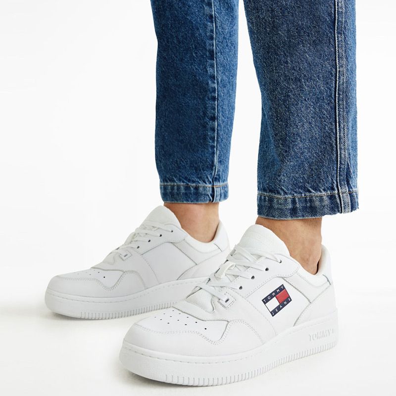 Sneaker Tommy Hilfiger με άνω μέρος από γνήσιο δέρμα σε άσπρο χρώμα. Διαθέτει άνετο εσωτερικό πάτο και εξωτερική σόλα από καουτσούκ. Ένα κομψό παπούτσι εμπνευσμένο από το μπάσκετ.