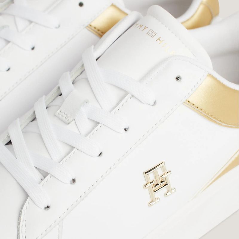 Αναβαθμίστε τις εμφανίσεις σας με αυτά τα γυναικεία sneakers τα οποία διαθέτουν πάτο σε στιλ πλατφόρμα με μονόγραμμα TH και αστραφτερές λεπτομέρειες που θα μαγνητίσουν τα βλέμματα.