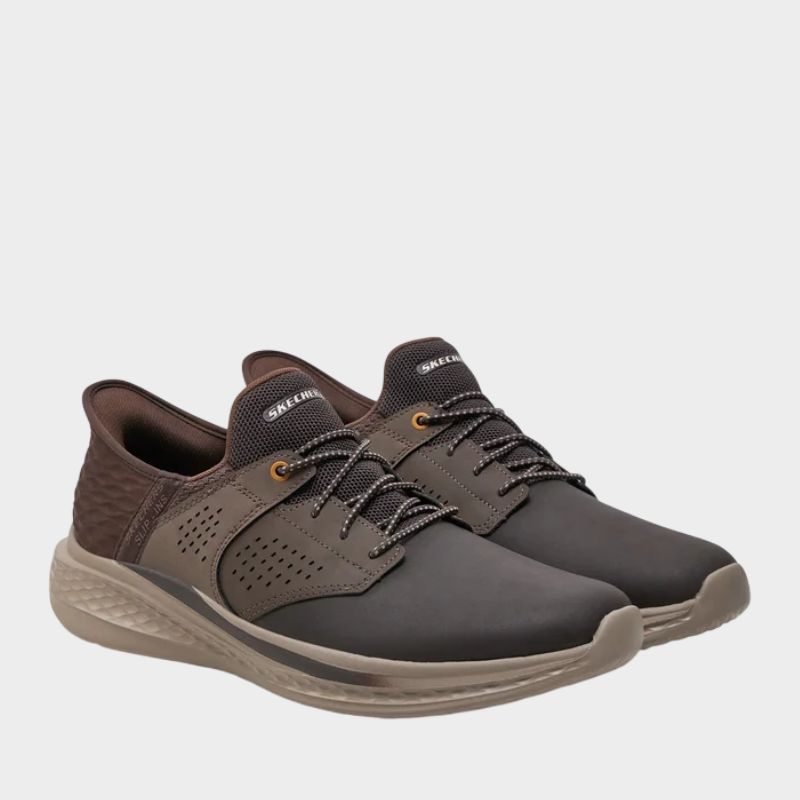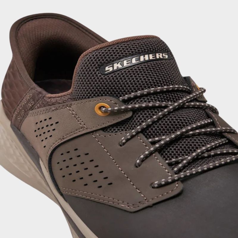 Το Skechers Slip-ins® Relaxed Fit®: Slade – Macklin συνδυάζει άνεση και πρακτικότητα με το μοναδικό Heel Pillow™ για στήριξη και εύκολη εφαρμογή. Διαθέτει εσωτερική σόλα Skechers Air-Cooled Memory Foam® και τεχνολογία Goga Mat Arch™ για αντικραδασμική προστασία και υποστήριξη. Κατασκευασμένο από δέρμα, διχτυωτό ύφασμα και συνθετικό επάνω μέρος, έχει ευρύχωρη εφαρμογή, εξωτερική σόλα με πρόσφυση και ύψος τακουνιού 1 1/4 ίντσας.