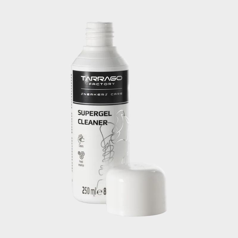Το Tarrago SuperGel Cleaner είναι ένα τζελ για τον καθαρισμό παπουτσιών από καμβά, ύφασμα, πλεκτά και διχτυωτά υλικά. Δεν καταστρέφει την κόλλα στα πέλματα.