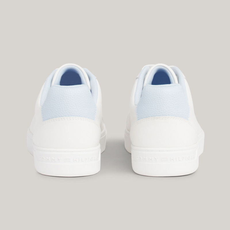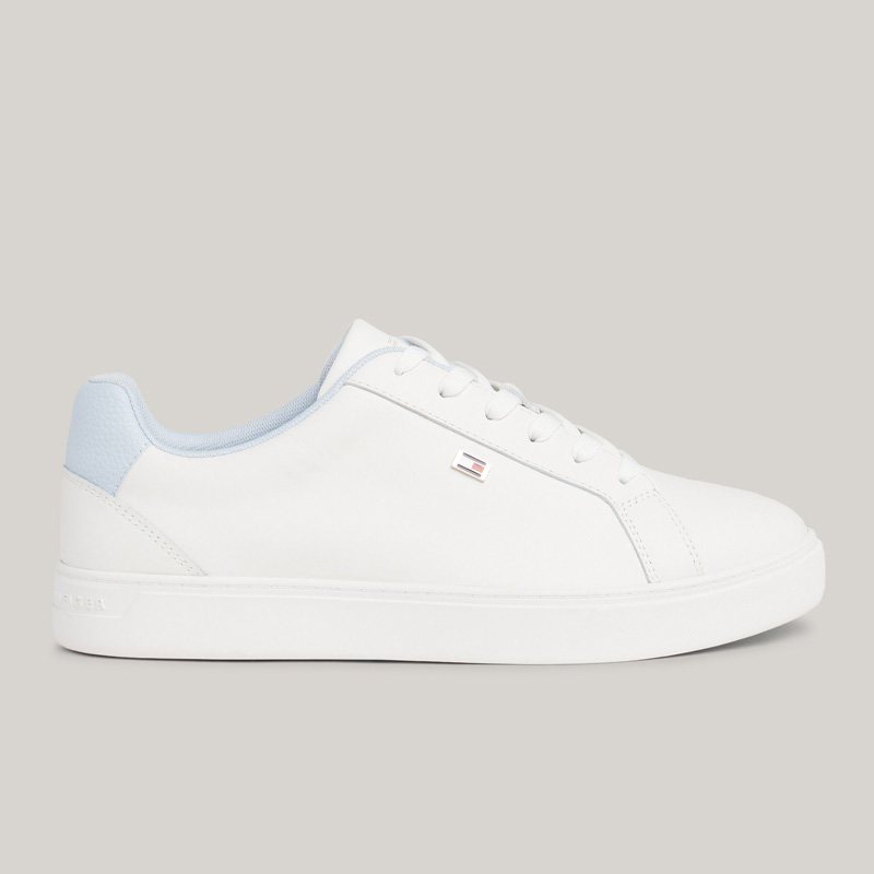 Αυτά τα δερμάτινα γυναικεία sneakers θα αναβαθμίσουν κάθε σας εμφάνιση χάρη στην πίσω λεπτομέρεια σε αντίθεση και τη λεπτομέρεια με το σημαιάκι.