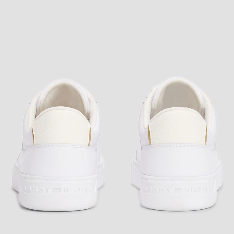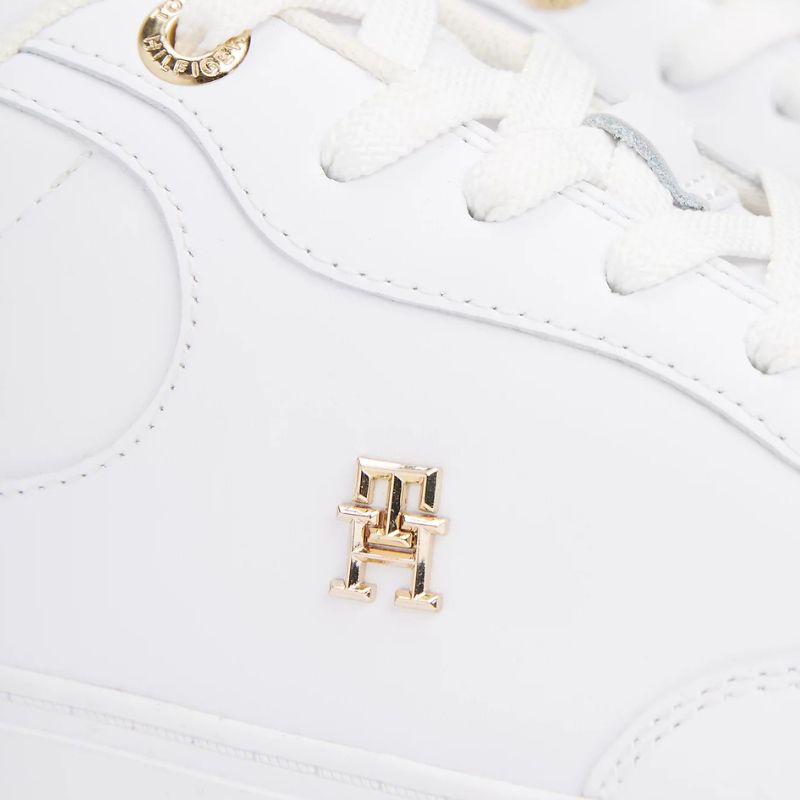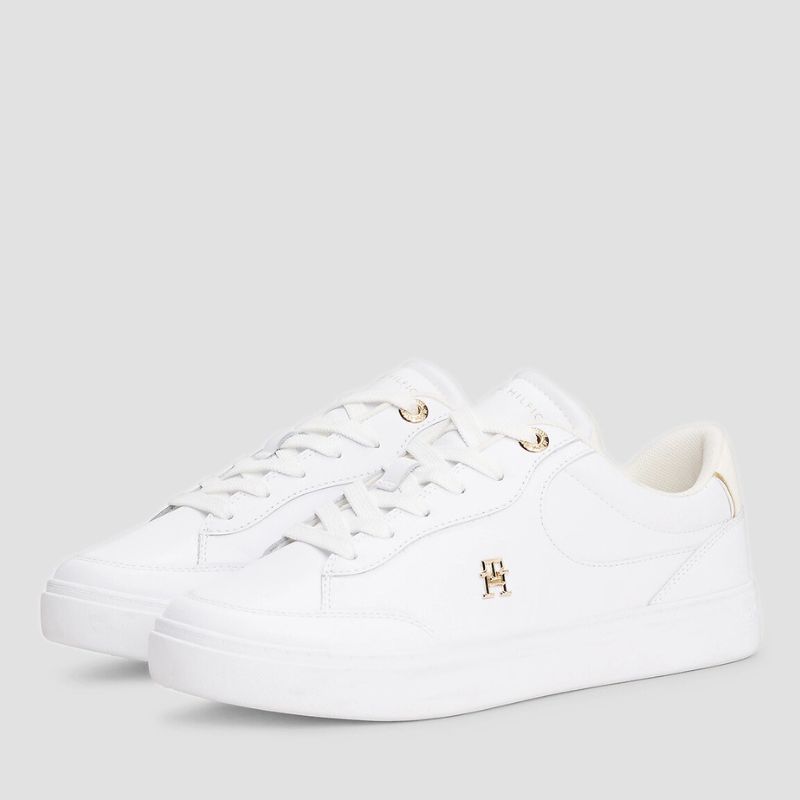 Τα Tommy Hilfiger FW0FW08322-YBS είναι γυναικεία sneakers σε λευκό χρώμα, κατασκευασμένα από υψηλής ποιότητας φυσικό δέρμα (grain leather) στο άνω μέρος, προσφέροντας ανθεκτικότητα και κομψότητα. Η εσωτερική επένδυση και ο πάτος είναι από ύφασμα, εξασφαλίζοντας άνεση κατά τη διάρκεια της ημέρας. Η εξωτερική σόλα από καουτσούκ παρέχει σταθερότητα και πρόσφυση. Διαθέτουν κορδόνια για ασφαλές κλείσιμο και στρογγυλή μύτη για κλασική εμφάνιση. Το μεταλλικό λογότυπο Tommy Hilfiger στο πλάι και το ανάγλυφο λογότυπο στη γλώσσα προσθέτουν διακριτικές λεπτομέρειες στο σχέδιο.
