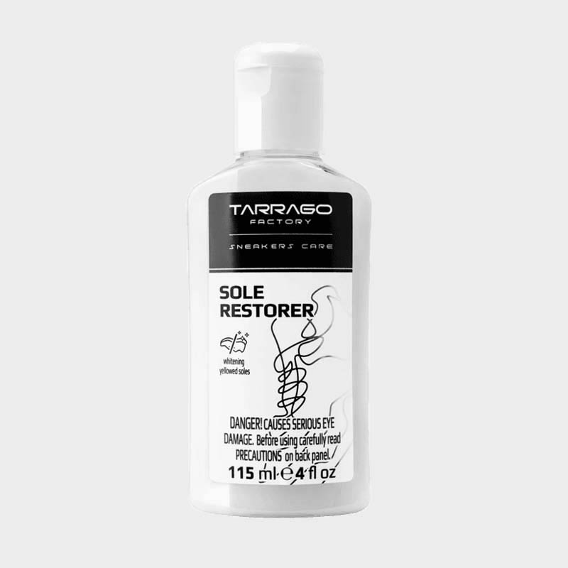 Το Tarrago Sneakers Sole Restorer είναι ένα οξυγονωμένο διάλυμα που θα επαναφέρει το λευκό των λαστιχένιων σολών σας αφαιρώντας την οξείδωση των κιτρινισμένων παπουτσιών σας.