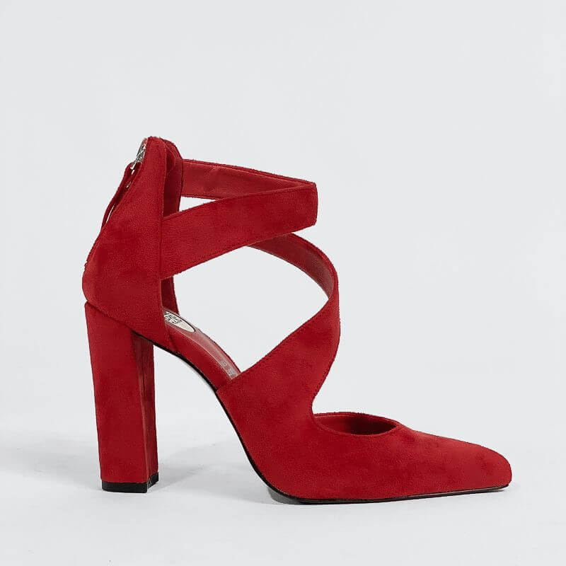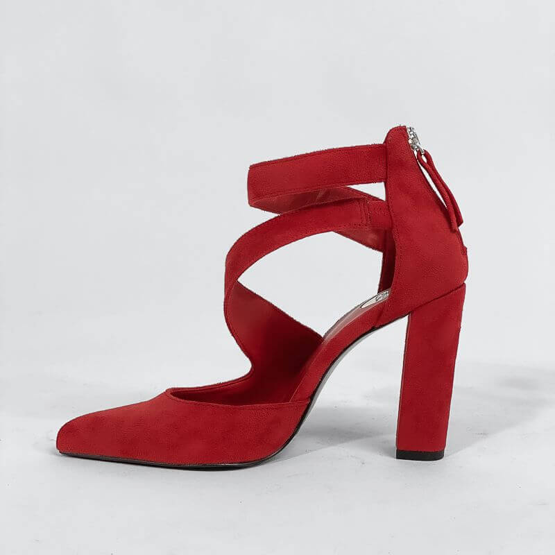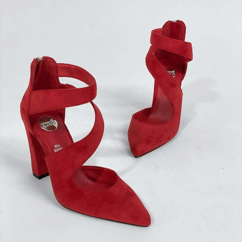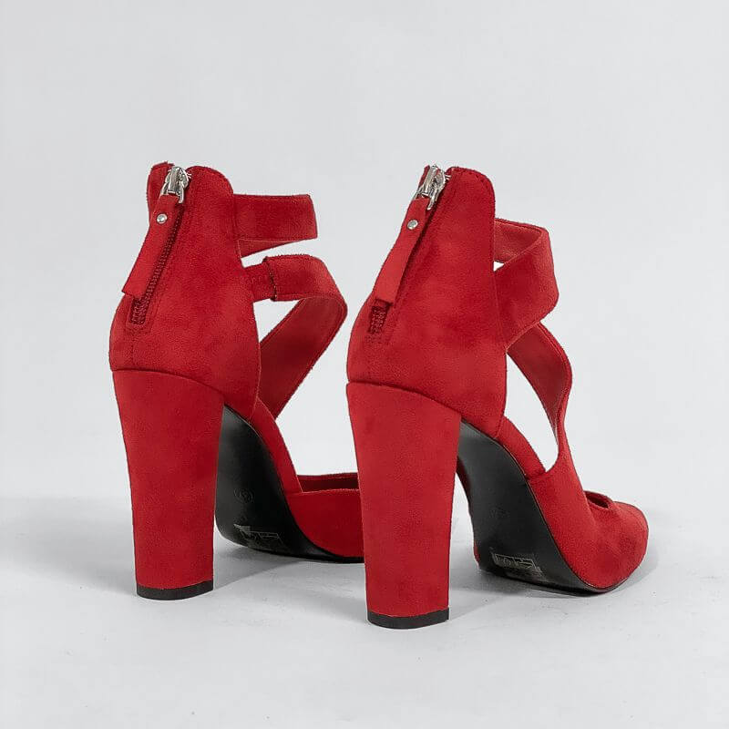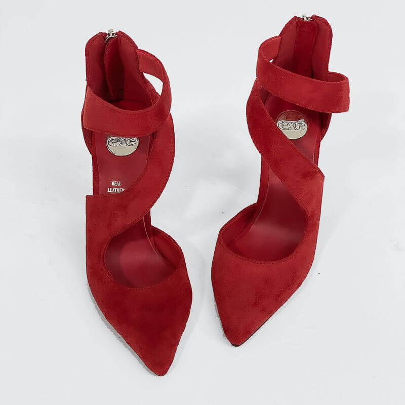 Γυναικεία suede γόβα της Exe σε κόκκινο χρώμα. Ο εσωτερικός πάτος είναι από γνήσιο δέρμα και αποτελεί μία εξαιρετική επιλογή για τις εξόδους σας,
