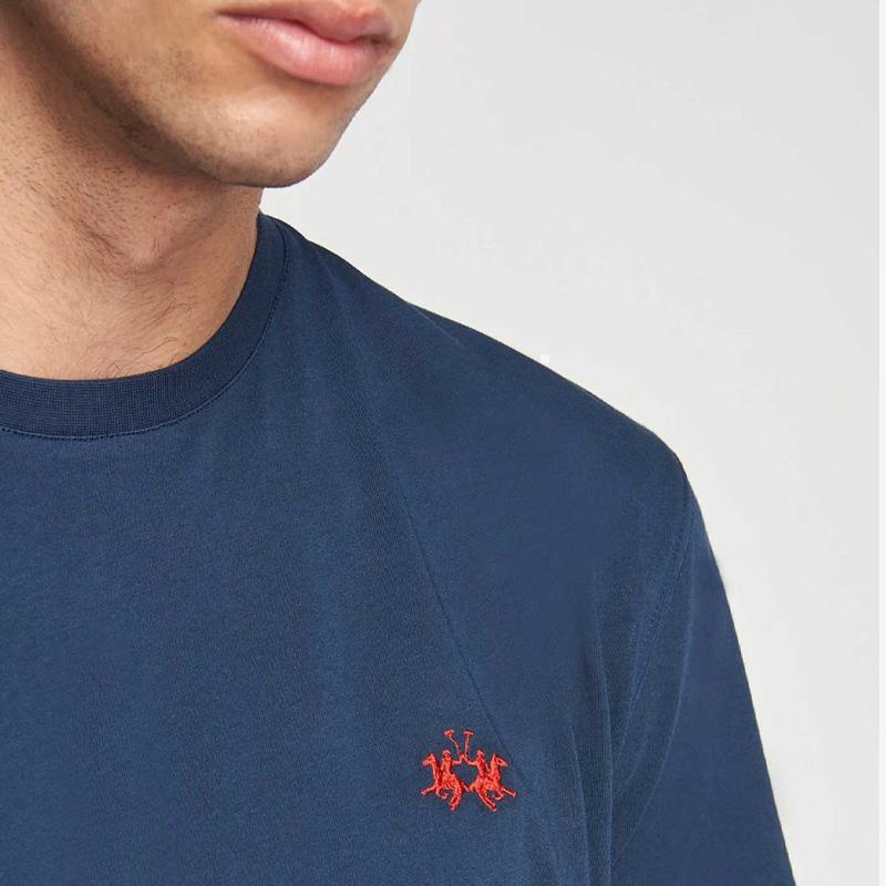 Σύνθεση: 100% βαμβάκι Χρώμα: Σκούρο Μπλε Κανονική εφαρμογή Στρογγυλή λαιμόκοψη Κανονικό μήκος Λογότυπο στο στήθος