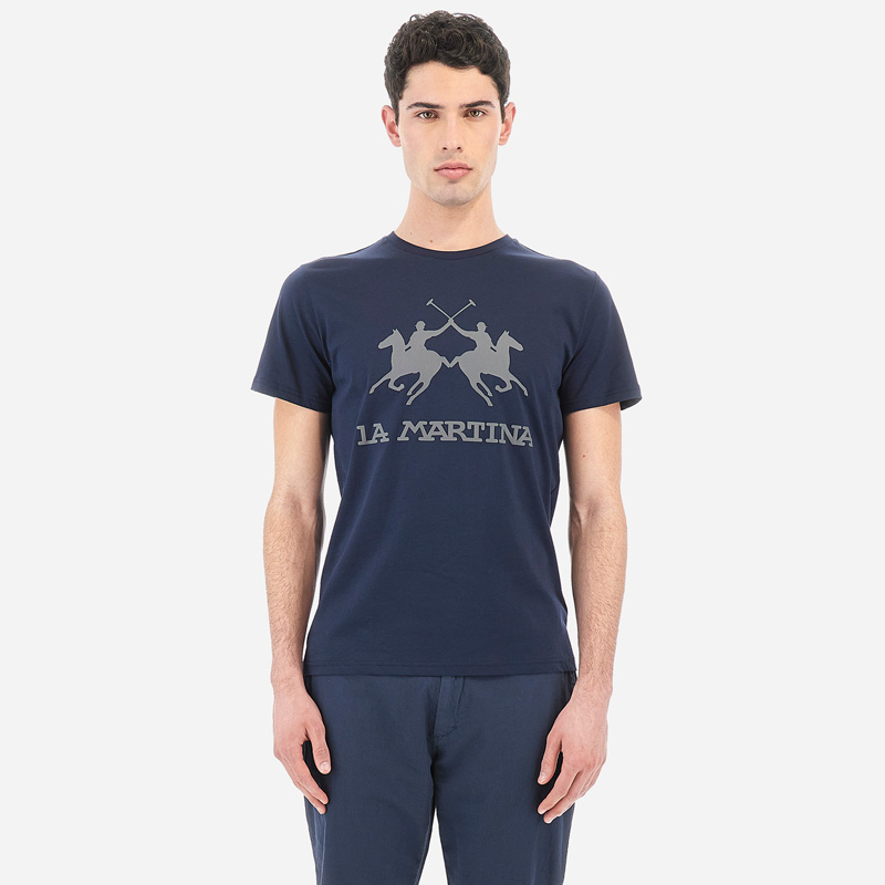 Σύνθεση: 100% βαμβάκι Χρώμα: Μπλε Κανονική εφαρμογή Στρογγυλή λαιμόκοψη Κανονικό μήκος Στάμπα με λογότυπο στο στήθος
