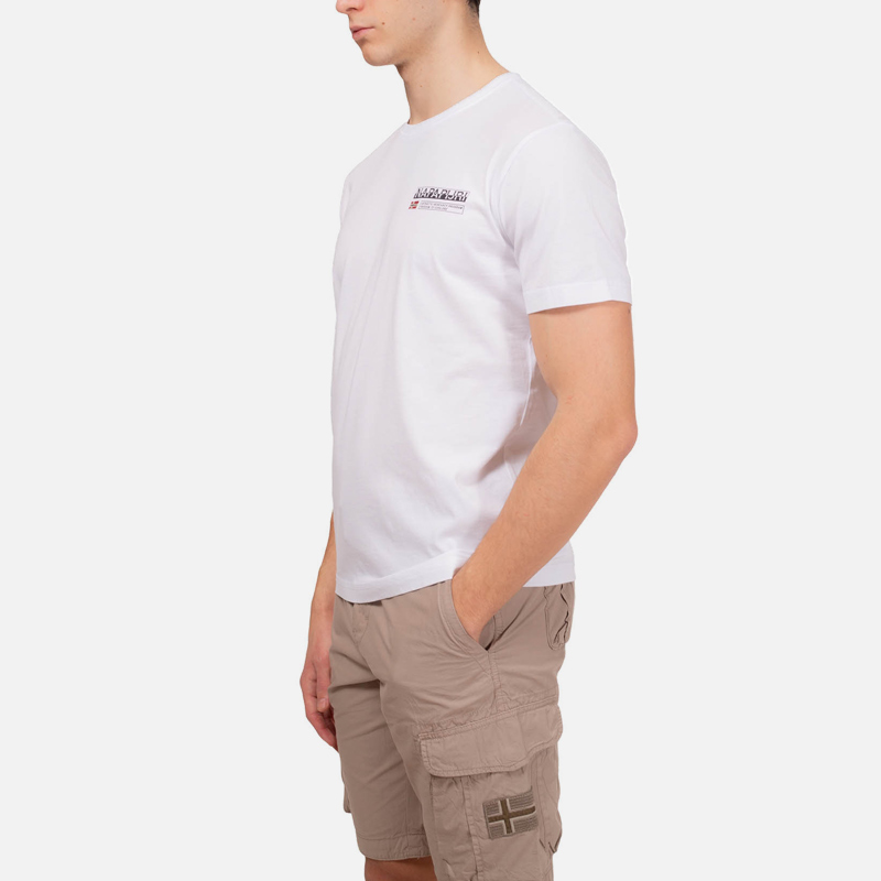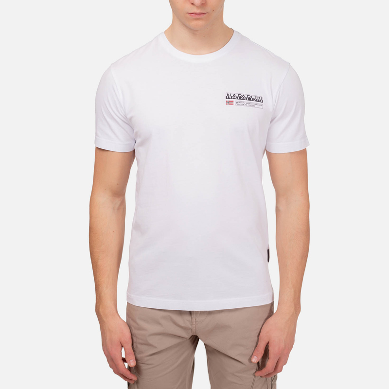 Σύνθεση: 100% βαμβάκι Χρώμα: Άσπρο Εφαρμογή: Κανονική Στρογγυλή Rib λαιμόκοψη Ζέρσεϊ Στάμπα με λογότυπο Napapijri στο στήθος