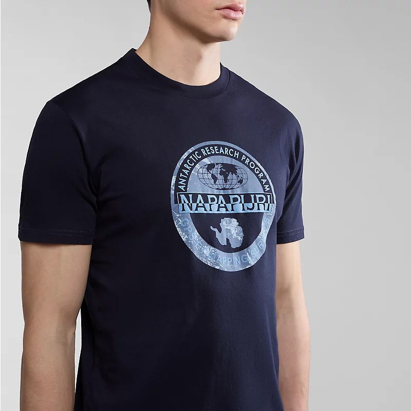 Σύνθεση: 100% βαμβάκι Χρώμα: Σκούρο μπλε Εφαρμογή: Κανονική Στρογγυλή Rib λαιμόκοψη Στάμπα με λογότυπο Napapijri στο στήθος