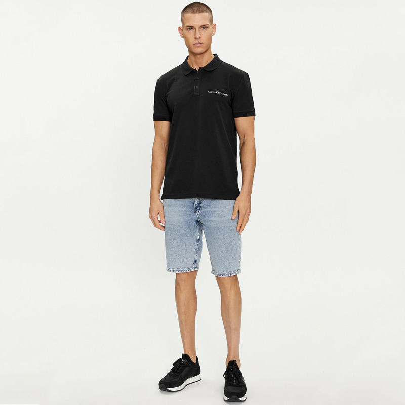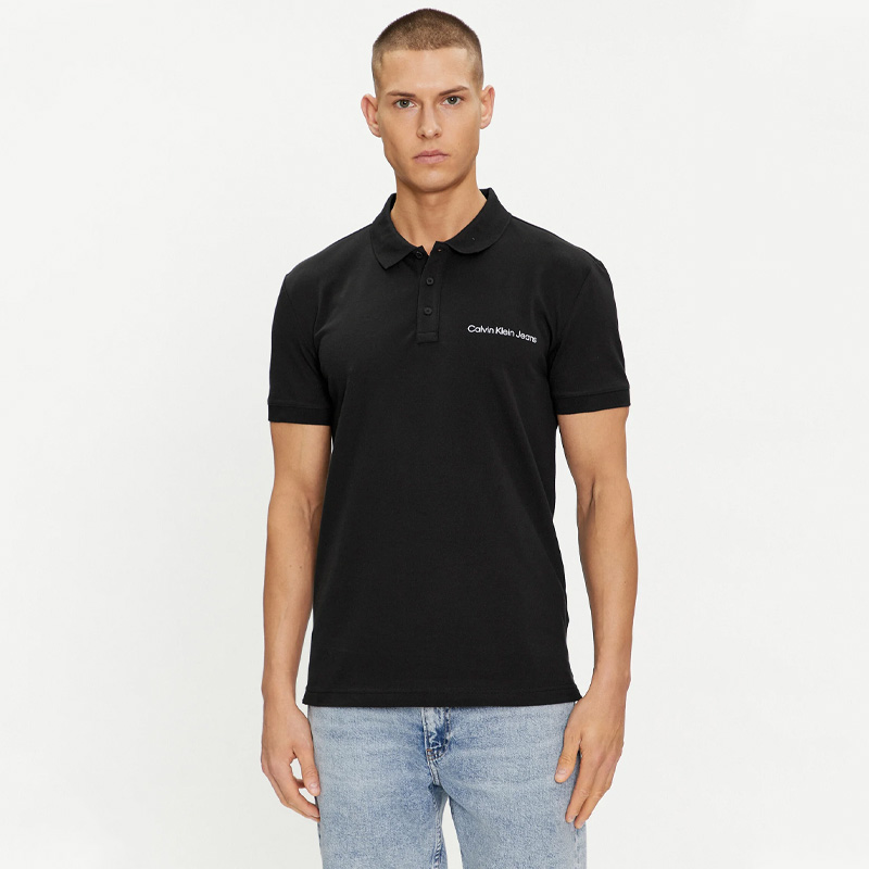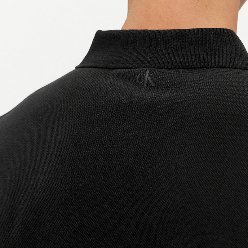 Σύνθεση: 94% Βαμβάκι, 6% Ελαστάνη Χρώμα: Μαύρο Κανονική εφαρμογή Στρόγγυλη λαιμόκοψη με γιακά Πατιλέτα με δύο κουμπιά Στάμπα λογότυπο στο στήθος