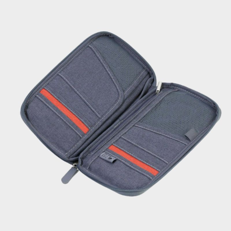 Σύνθεση: Ύφασμα Χρώμα: Γκρι Διαστάσεις: Μ 22 x Υ 13.3 x Π 2 εκ Πολλαπλές εσωτερικές θήκες Προστασία RFID