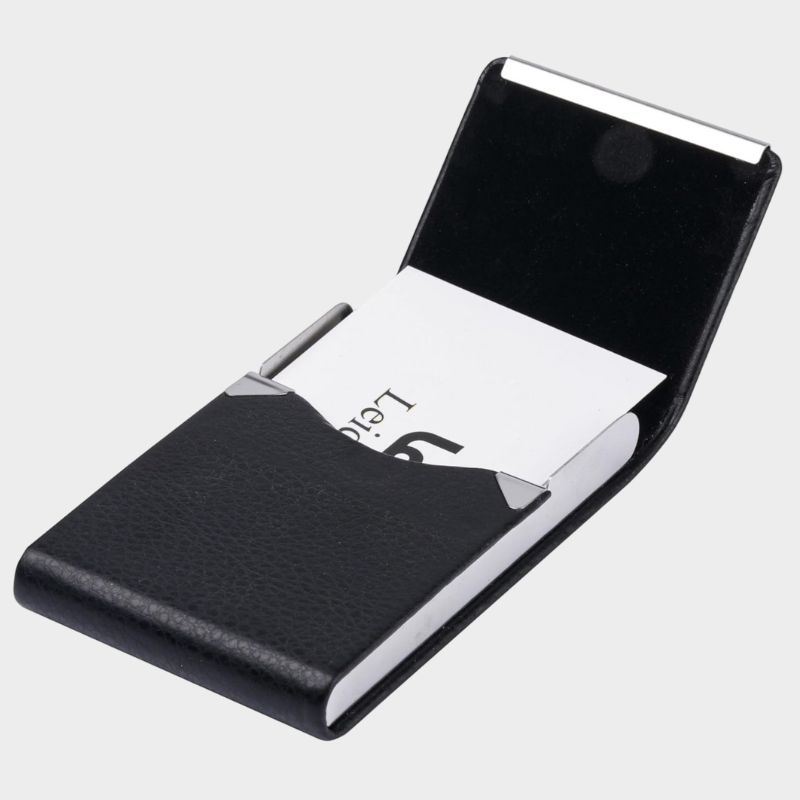 Διαστάσεις: 9.4x 5.8×1.5 cm Χωρητικότητα: 15-25 επαγγελματικές κάρτες (4-8 πιστωτικές κάρτες) Υλικό: Ανοξείδωτο ατσάλι, συνθετικό δέρμα