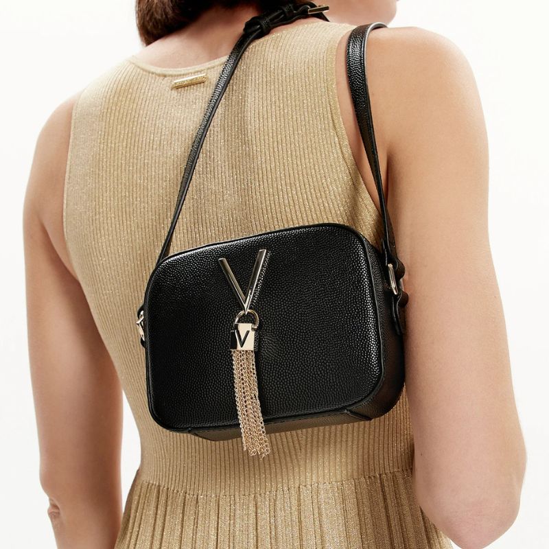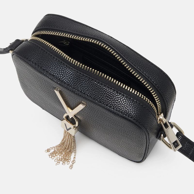 Διαστάσεις: 17x13x6 cm Χρώμα: Μαύρο/Χρυσό Υλικό: Οικολογικό δέρμα Κλείσιμο: Φερμουάρ Ρυθμιζόμενος ιμάντας για κράτημα χιαστί