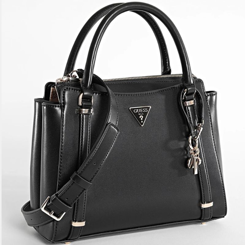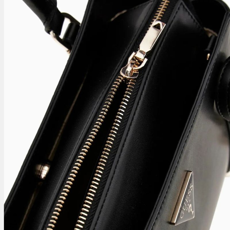 Η μαύρη τσάντα Daryna από GUESS διαθέτει διπλές λαβές στο επάνω μέρος και ρυθμιζόμενο ιμάντα χιαστί, προσφέροντας ευελιξία και κομψότητα για κάθε περίσταση. Κατασκευασμένη από Calf PU με γυαλιστερό χρυσό υλικό.
