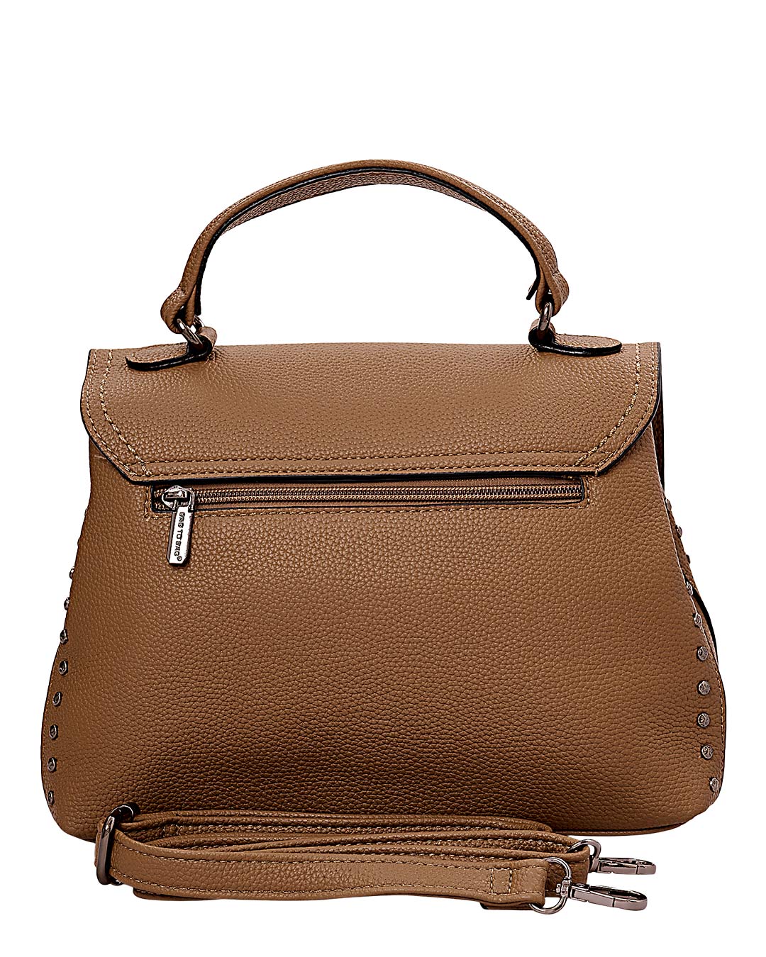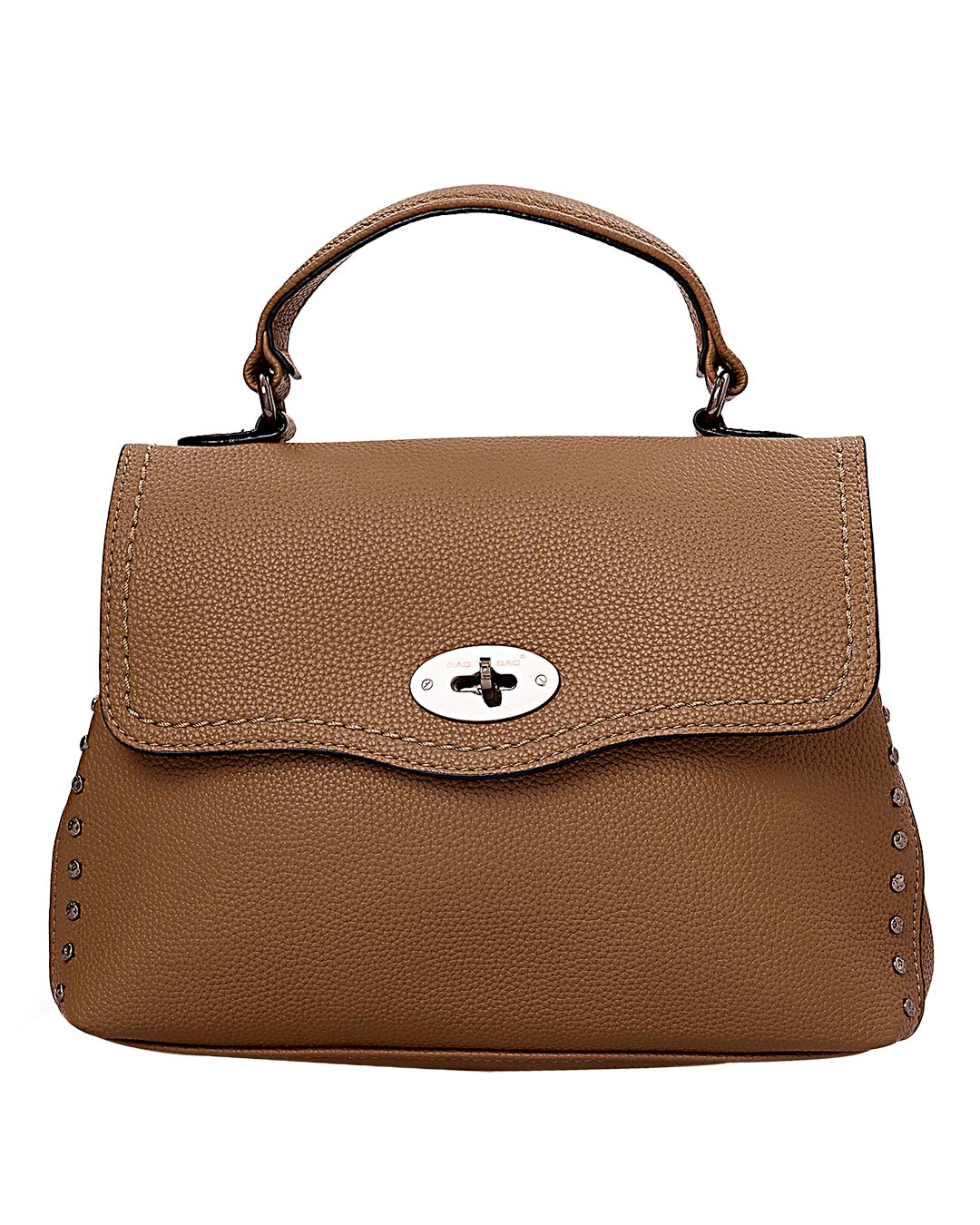 Τσάντα χειρός από υψηλής ποιότητας τεχνόδερμα.Αποτελείται από έναν κύριο χώρο που κλείνει με φερμουάρκαι καπάκι που διαθέτει περίτεχνο κούμπωμα.Εσωτερικά διαθέτει στην μπροστινή όψη βοηθητικές θήκες καιπίσω όψη βοηθητική θήκη με φερμουάρ.Εξωτερικά διαθέτει στην πίσω όψη τσέπη που κλείνει με φερμουάρ.Διαθέτει ρυθμιζόμενο-αποσπώμενο λουράκι!