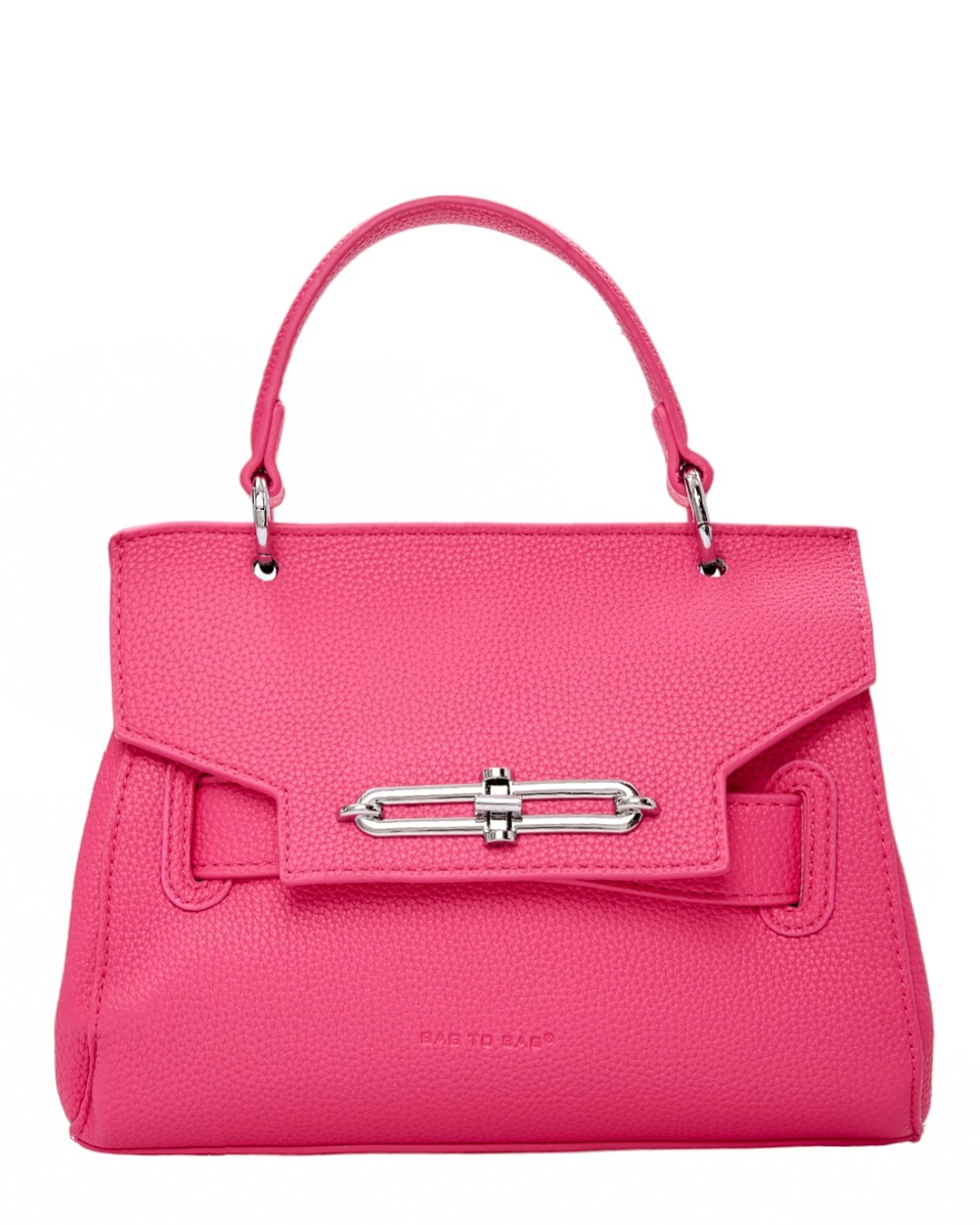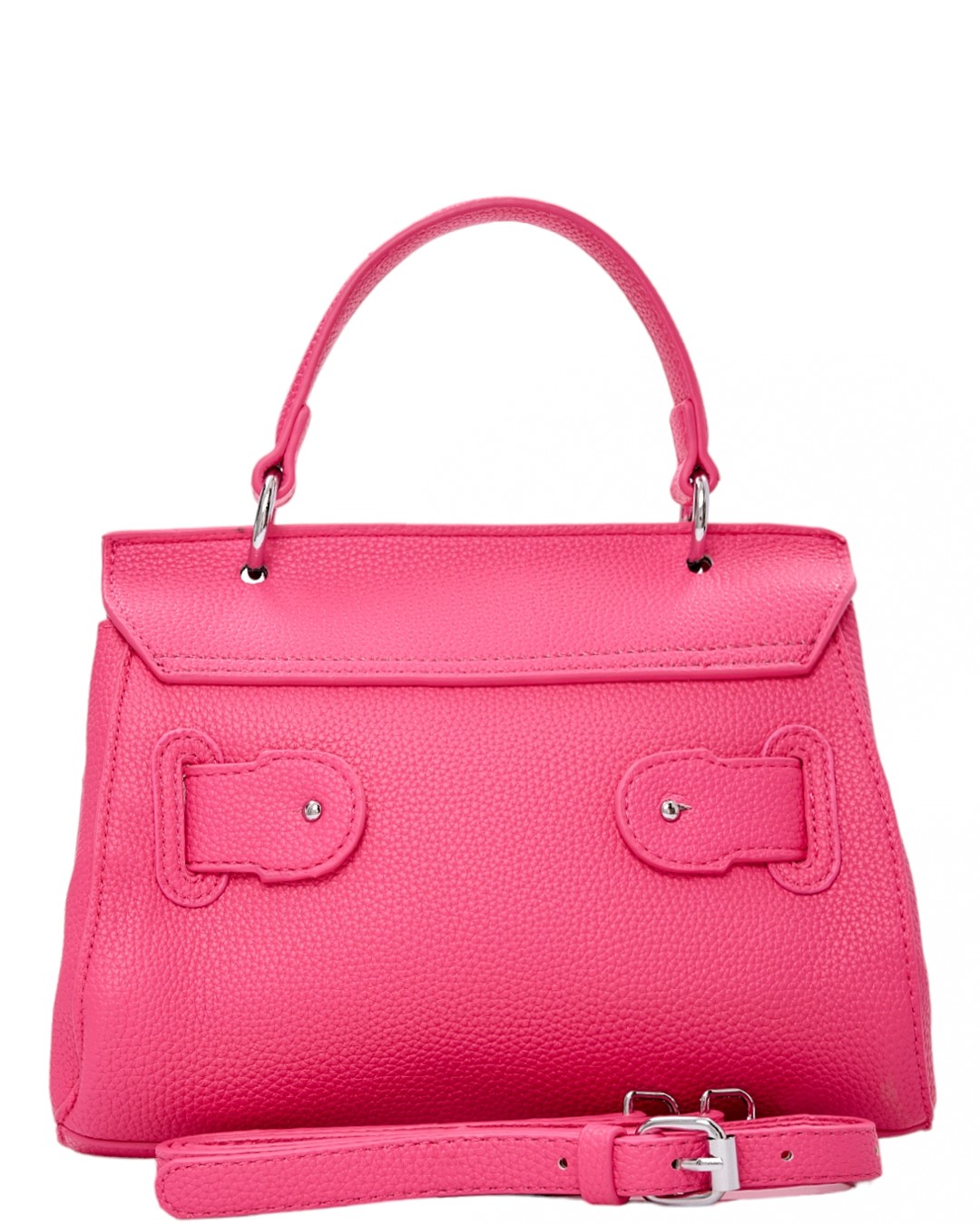 Τσάντα χειρός από υψηλής ποιότητας τεχνόδερμα!Αποτελείται από έναν κύριο χώρο που κλείνει με φερμουάρ κ έπειτα με καπάκι που διαθέτει μαγνητικό κούμπωμα.Εσωτερικά διαθέτει θήκη με φερμουαρ στην μέση κ την πίσω όψη της κ στην εμπρός διαθέτει βοηθητική ανοιχτή θήκη.Επίσης διαθέτει αποσπώμενο ρυθμιζόμενο λουράκι!