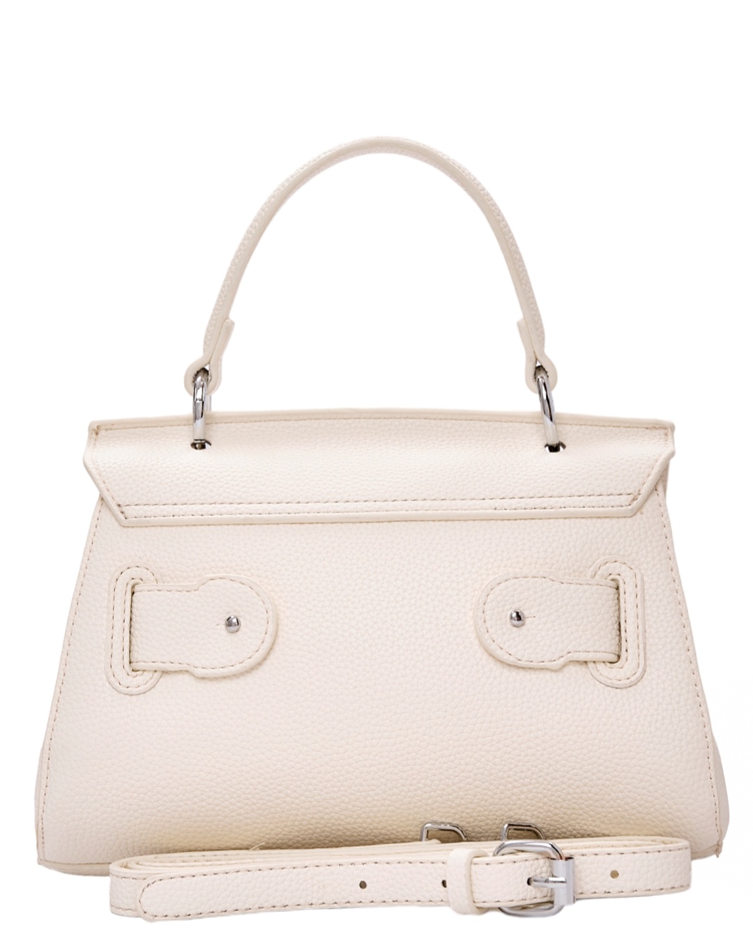 Τσάντα χειρός από υψηλής ποιότητας τεχνόδερμα!Αποτελείται από έναν κύριο χώρο που κλείνει με φερμουάρ κ έπειτα με καπάκι που διαθέτει μαγνητικό κούμπωμα.Εσωτερικά διαθέτει θήκη με φερμουαρ στην μέση κ την πίσω όψη της κ στην εμπρός διαθέτει βοηθητική ανοιχτή θήκη.Επίσης διαθέτει αποσπώμενο ρυθμιζόμενο λουράκι!