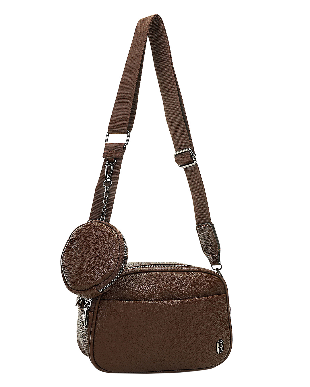 Τσαντα χιαστί με πορτοφολάκι από υψηλής ποιότητας τεχνόδερμα.Αποτελείται από δύο κύριους χώρους που κλείνουν με φερμουάρ.Διαθέτει βοηθητική τσέπη στο πίσω μέρος που κλείνει με φερμουάρ.Επίσης διαθέτει ρυθμιζόμενο-αποσπώμενο ιμάντα.