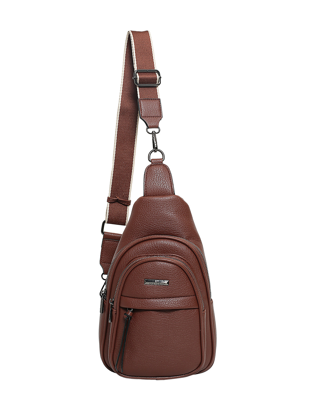 Τσαντα χιαστί από υψηλής ποιότητας τεχνόδερμα.Αποτελείται από δύο κύριους χώρους που κλείνουν με φερμουάρ.Διαθέτει βοηθητική τσέπη στο πίσω μέρος που κλείνει με φερμουάρ.Επίσης διαθέτει ρυθμιζόμενο-αποσπώμενο ιμάντα.