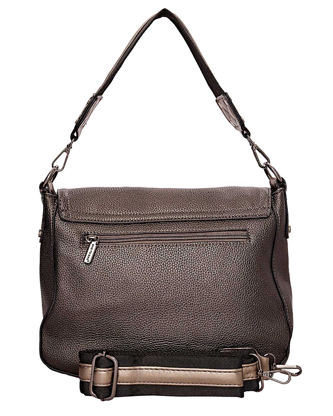 Τσάντα χιαστί από υψηλής ποιότητας τεχνόδερμα.Αποτελείται από έναν κύριο χώρο που κλείνει με φερμουάρκαι καπάκι που κλείνει με κουμπιά.Εξωτερικά στην πίσω όψη διαθέτει βοηθητική τσέπη που κλείνει με φερμουάρΔιαθέτει αποσπώμενο-ρυθμιζόμενο ιμάντα!