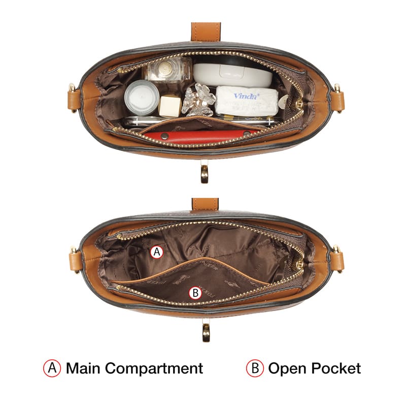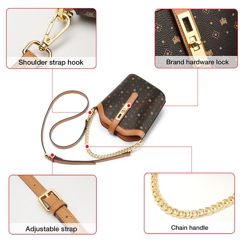 – Υλικά – Κατασκευασμένο από PVC . Η επένδυση από πολυεστέρα είναι μεταξένια και δεν θα χαράξει τα προσωπικά σας αντικείμενα. Τα αξεσουάρ από κράμα και ο ιμάντας ώμου από mircofiber μπορούν να παραμείνουν σε καλή κατάσταση ακόμα κι αν το χρησιμοποιείτε για μεγάλο χρονικό διάστημα.