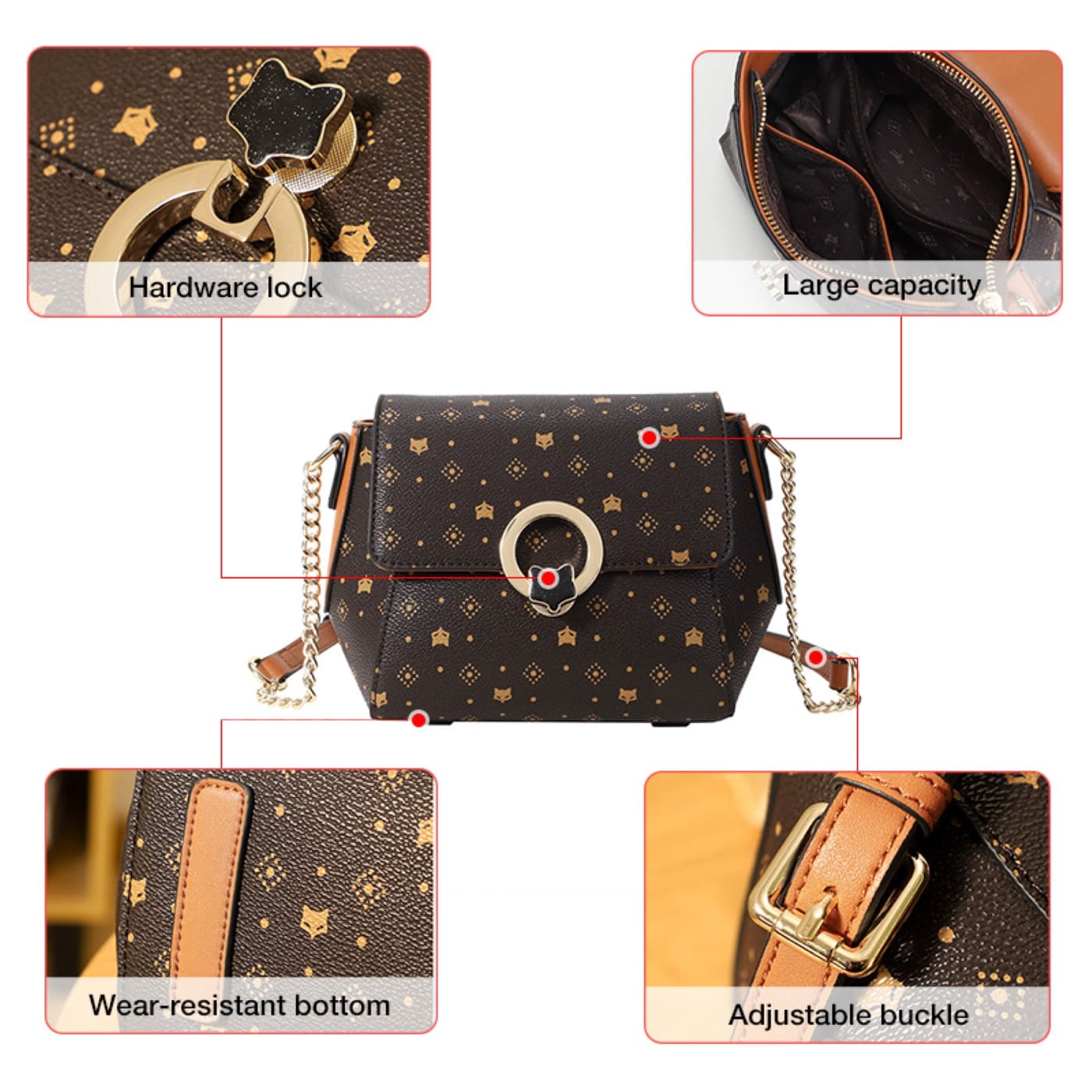– Χαρακτηριστικά – Το μοναδικό μοτίβο με την υπογραφή της μάρκας σε συνδυασμό με το στολίδι Foxer κάνει τη μικρή τσάντα αριστοκρατική και κομψή. Έρχεται με ρυθμιζόμενο λουρί ώμου και είναι αποσπώμενο, αν θέλετε να χρησιμοποιήσετε την τσάντα ως χειρός, μπορείτε να αφαιρέσετε τον ιμάντα ώμου.