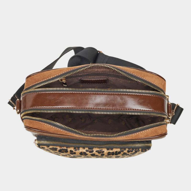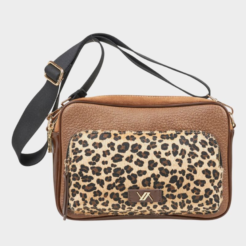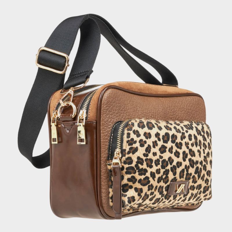 Εξωτερικό μπροστινή θήκη με φερμουάρ σε λεοπάρ print και μεταλλικό λογότυπο Verde