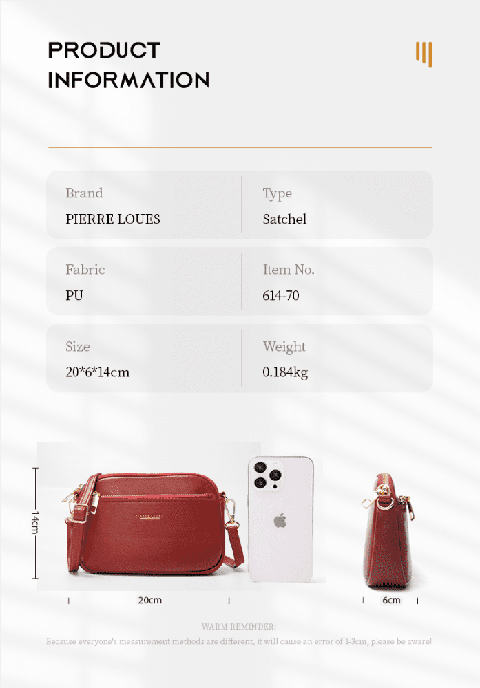 – Δομή: Η γυναικεία τσάντα χιαστί Pierre Loues για γυναίκες διαθέτει 2 θήκες με φερμουάρ, 1 εσωτερική τσέπη για να καλύψει τις καθημερινές σας ανάγκες δραστηριότητας.